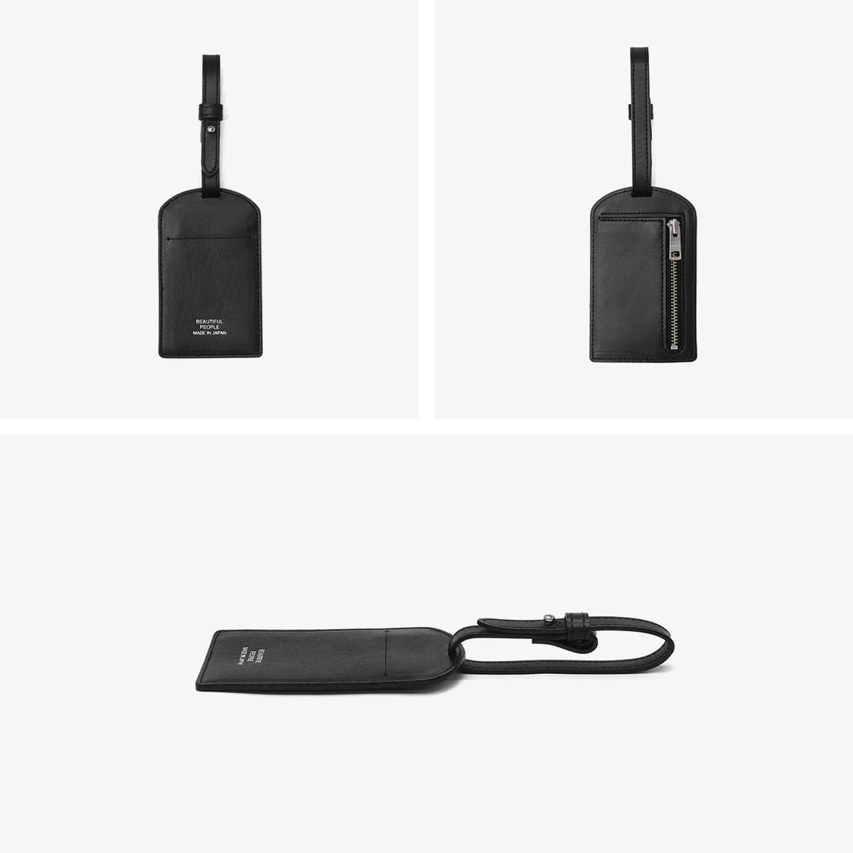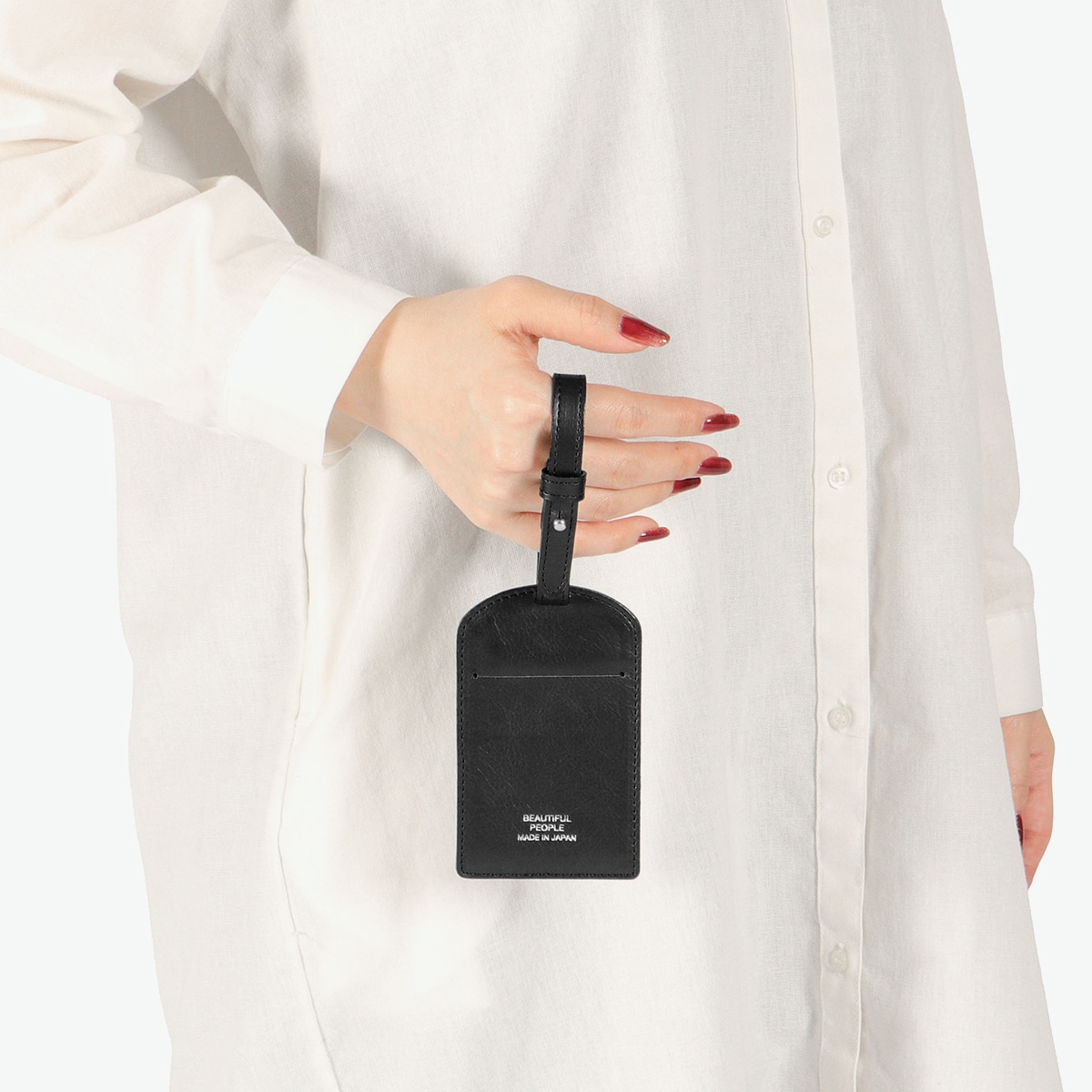 キャリーケースや旅行用バッグに付属されているバーゲージタグをイメージした、遊び心溢れるデザインがポイントのマルチポーチ。ジップ付きの収納部は小銭入れとしての使用も可能で、ミニ財布として活用できるユニークな設計。スムースレザーのなめらかな質感と、シックなカラーリングがマッチした、スマートさが際立つアイテムです。