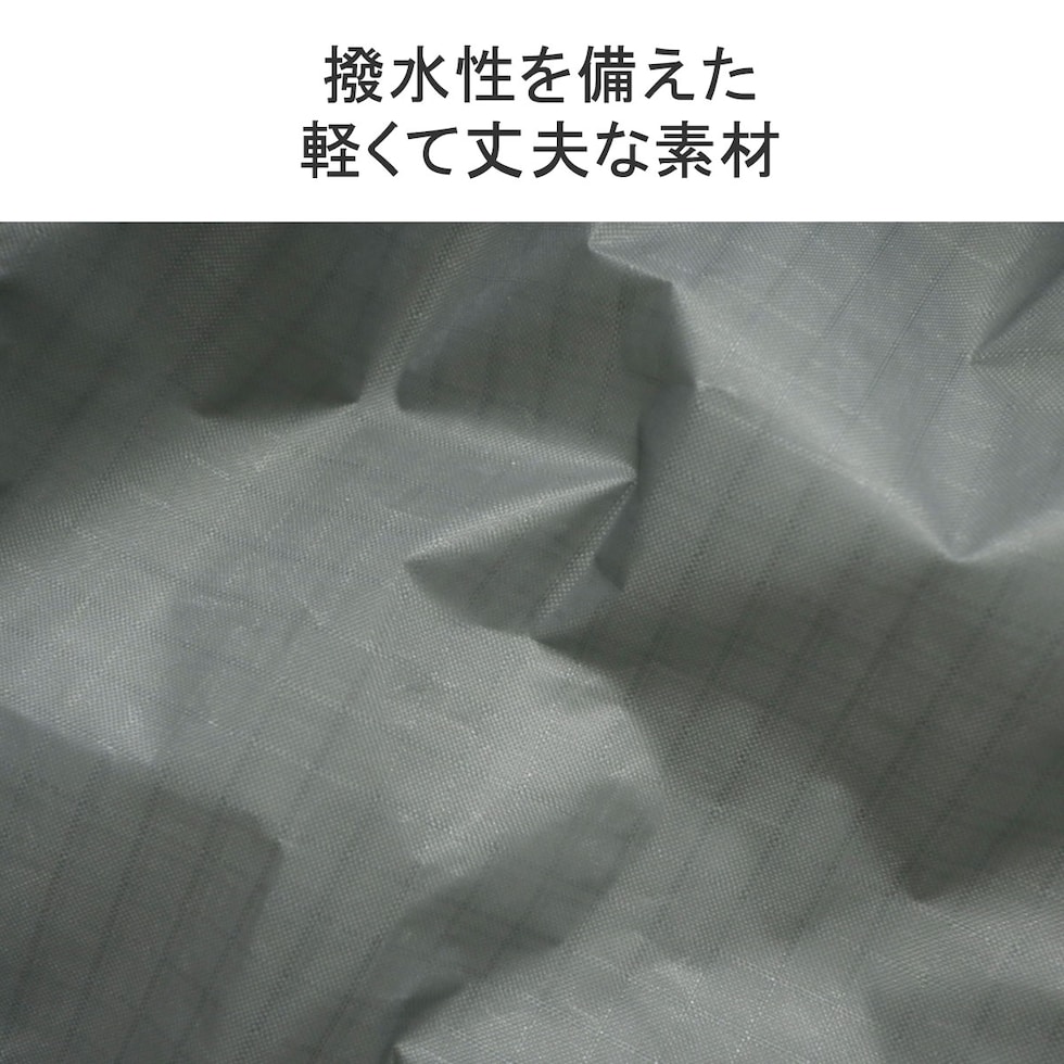 本体生地には、ヨットの帆に使用される軽くて強く、撥水性のあるポリエステル地を採用。4色展開のうち、ブラック以外のカラーには透け感があります。薄い素材に見えながらも、2重仕立ての身頃なのでより丈夫な仕上がりとなっています。表面は樹脂加工を施してあるため、シャラシャラと音がするのが特徴的です。