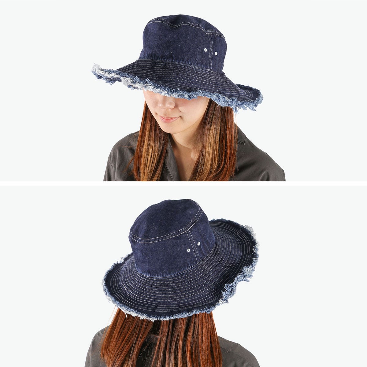 ユーズド感漂うデニム素材に切りっぱなしブリムがアクセントのバケットハット。つば広&深め設計でしっかりUV対策ができ、日差しから顔を守ります。洗える仕様でお手入れも簡単!大人のおしゃれを引き立てるアイテムです。