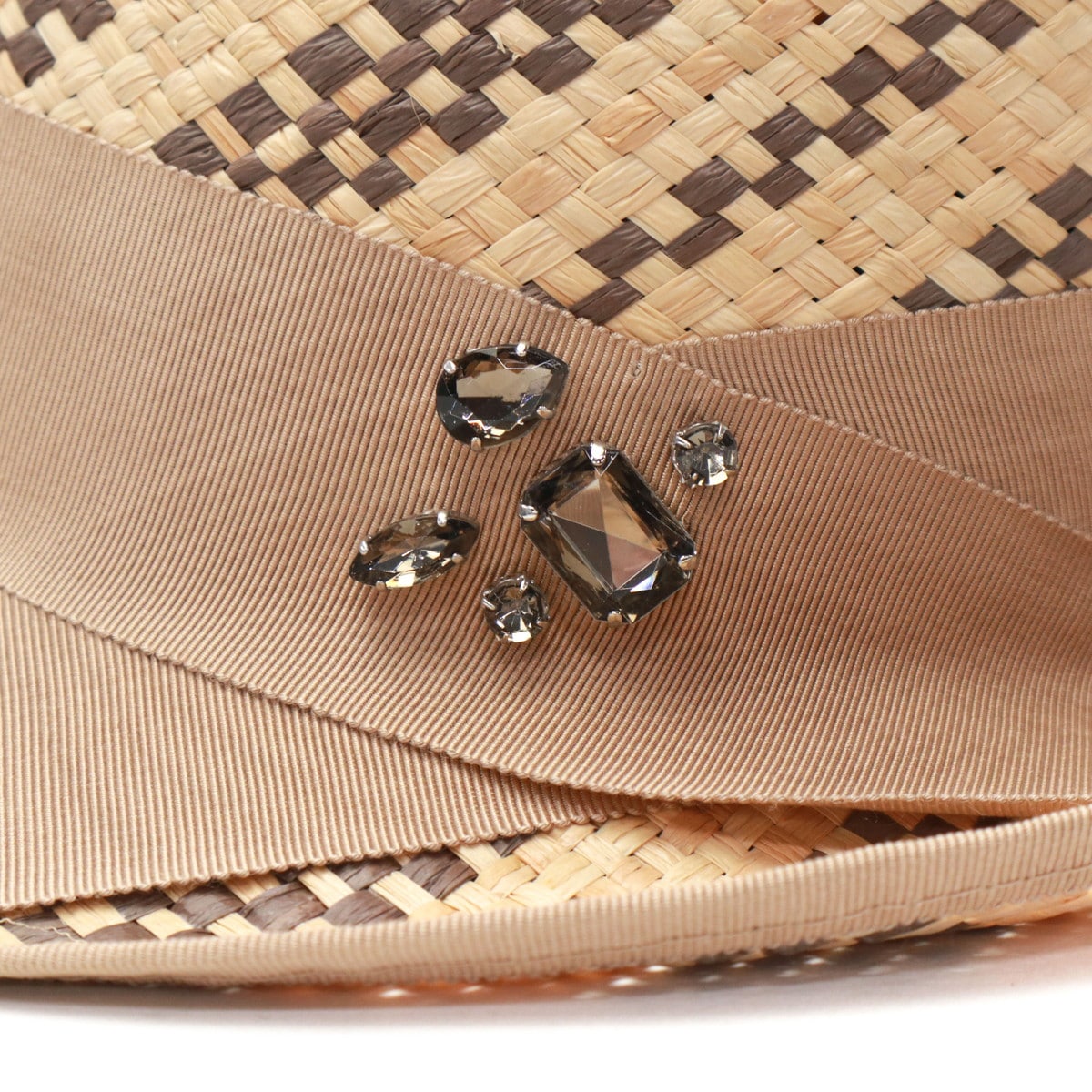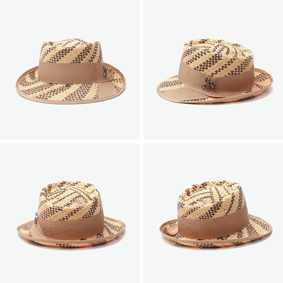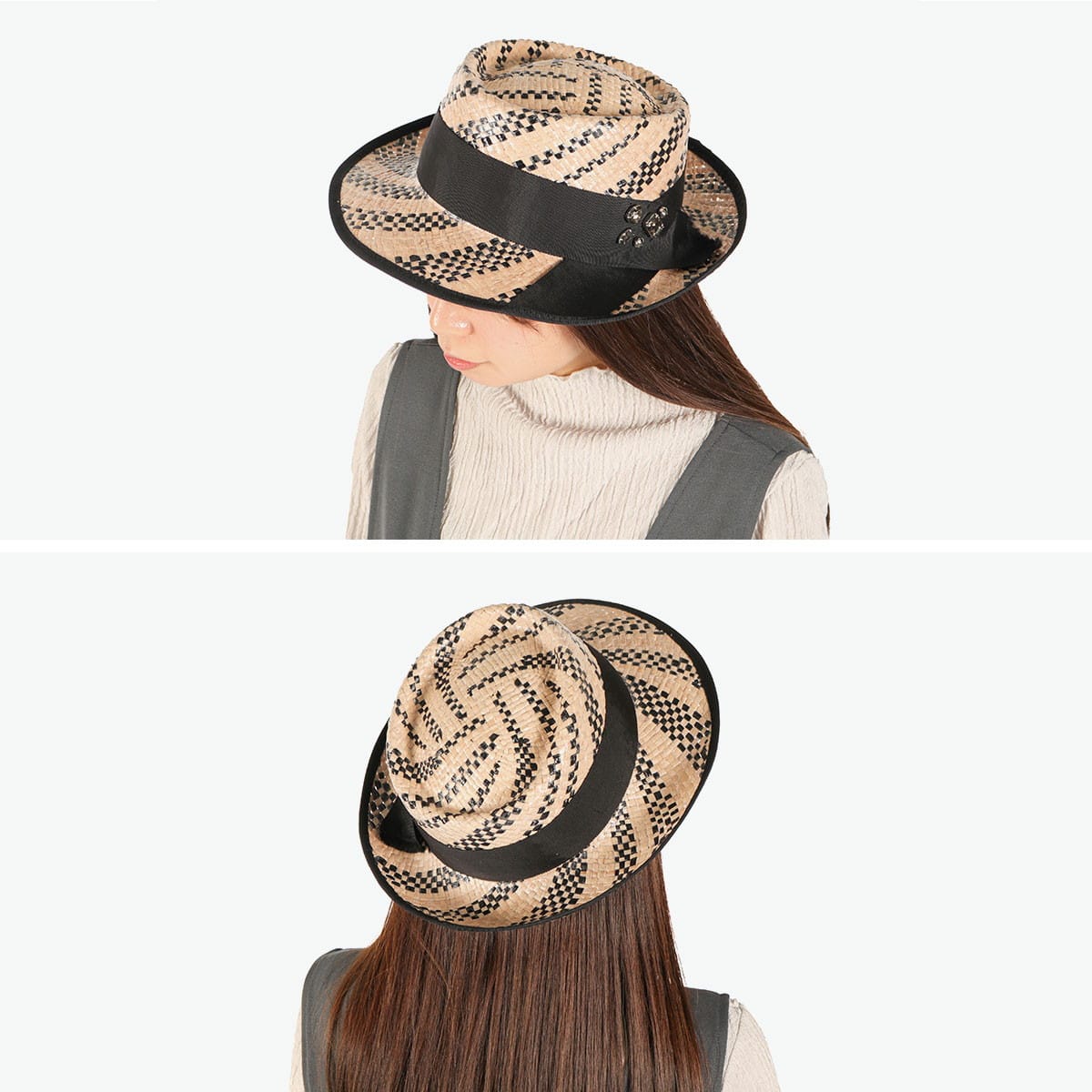 天然素材ラフィアの軽やかな風合いが魅力のポークパイハット。太めのリボンとビジューが華やかさを添え、上品な印象を与えます。コーム付きでしっかりフィットし、安定感のあるかぶり心地◎カジュアルからきれいめまで幅広いスタイルに馴染む、大人の夏にふさわしい一品です。