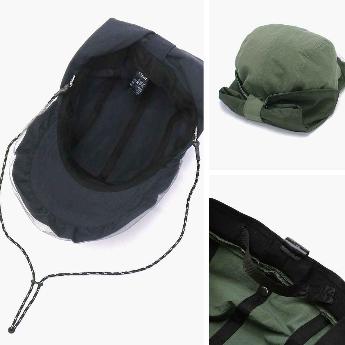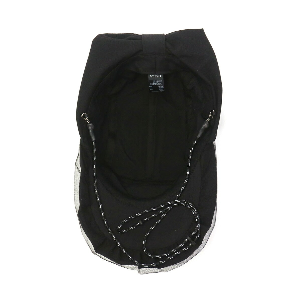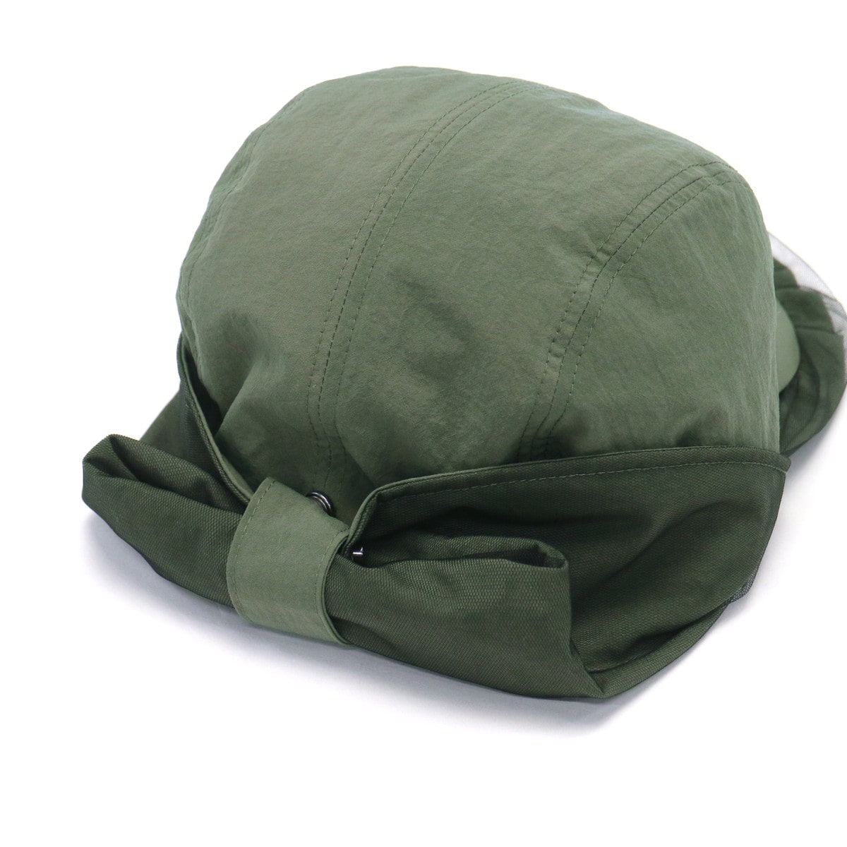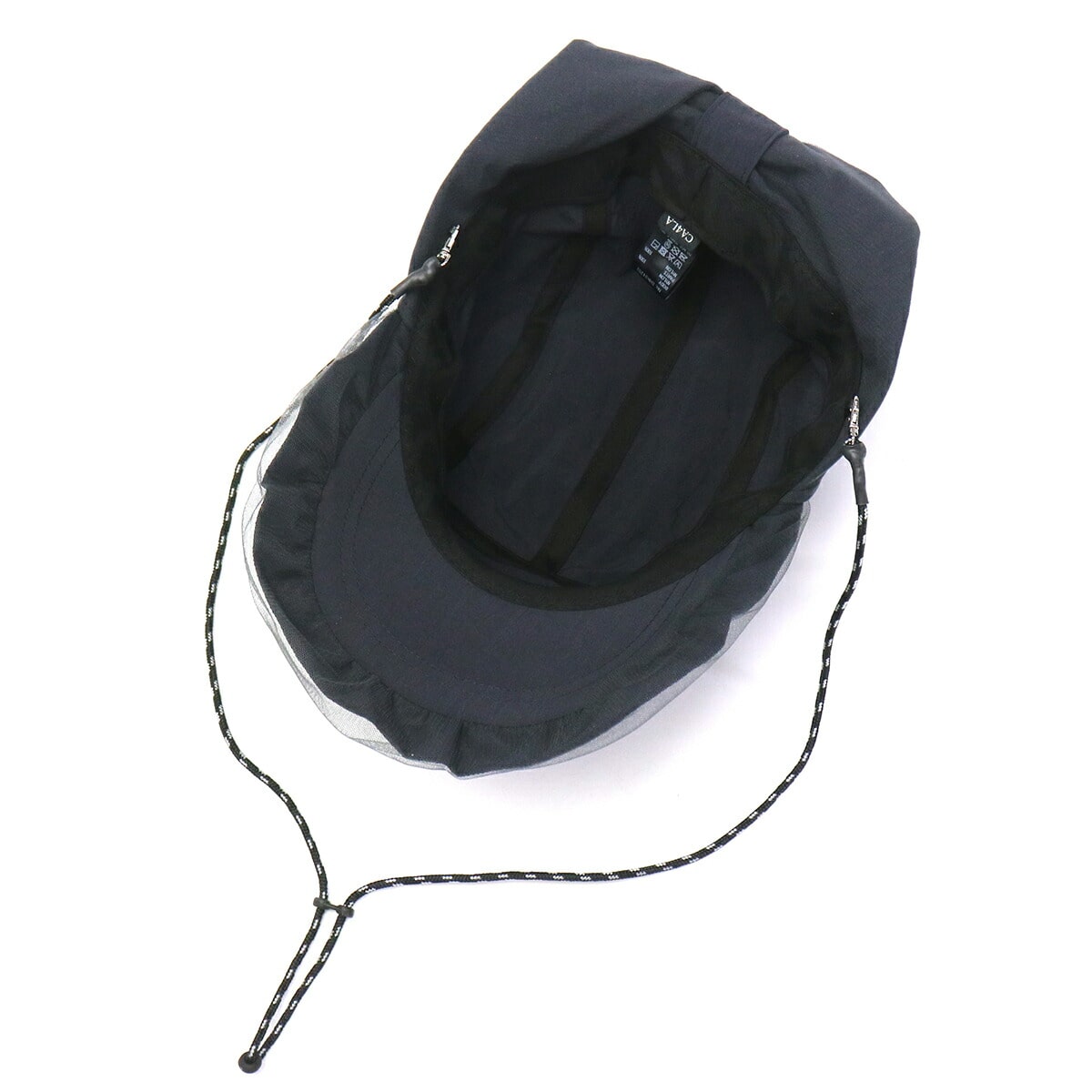 首元までカバーする日除け付きジェットキャップ。チュール付きのつばやワッペンがアクセントになった、スポーティー&フェミニンなデザインです。リサイクルナイロン素材はUVカット・撥水機能つきで、手洗いも可能。アウトドアや旅行に最適です。