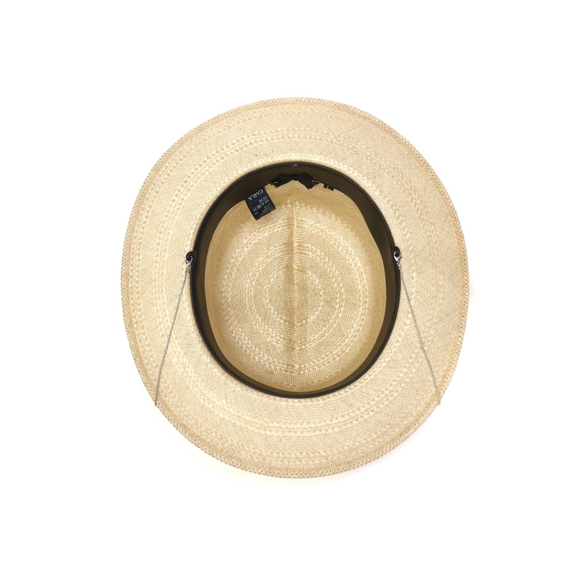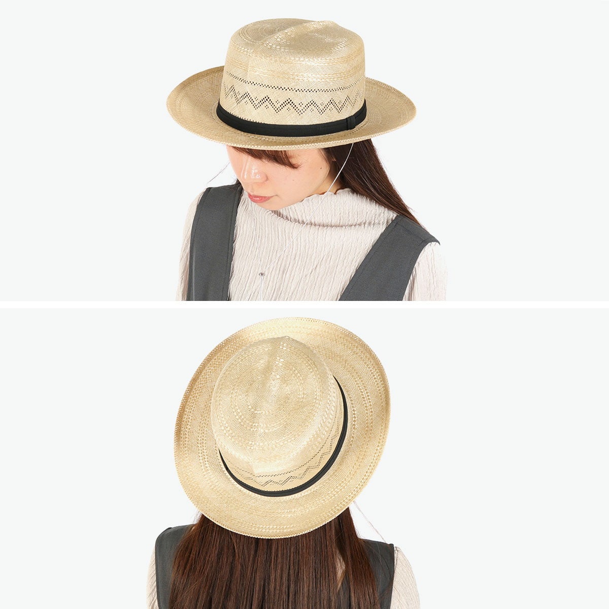 希少なシゾール素材を使用した、軽量で通気性抜群のオプティモハット。独特なシルエットが上品さを引き立て、和装とも好相性です。取り外し可能なニッケル素材のあご紐付きで、自在なアレンジが可能。日除け対策にも優れ、春夏のお出かけや旅行にぴったりの一品です。