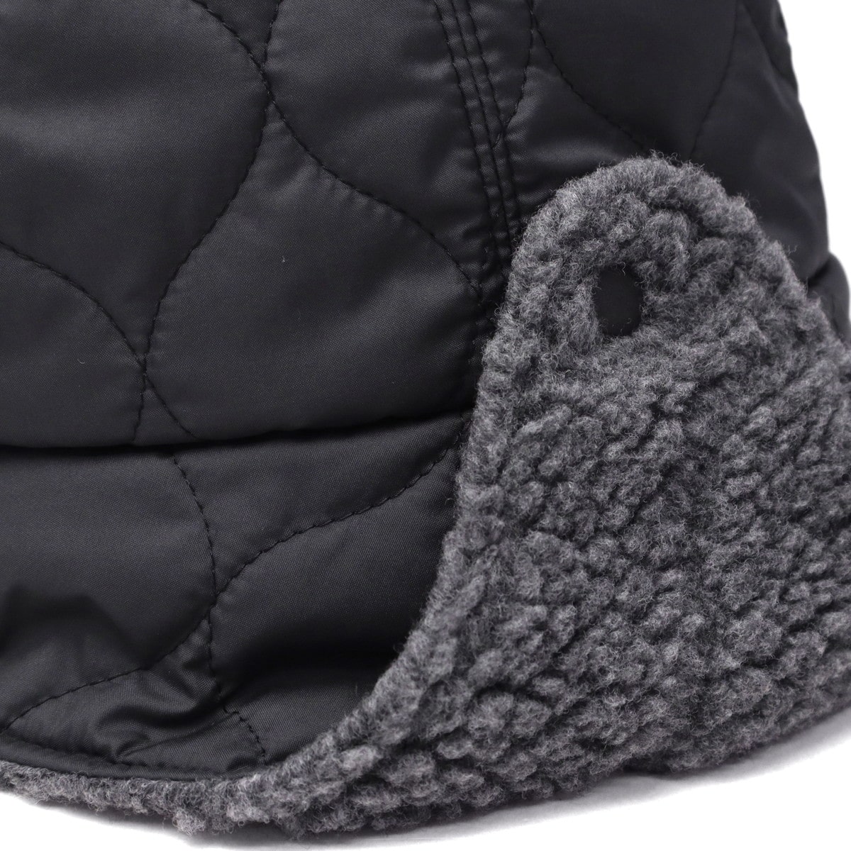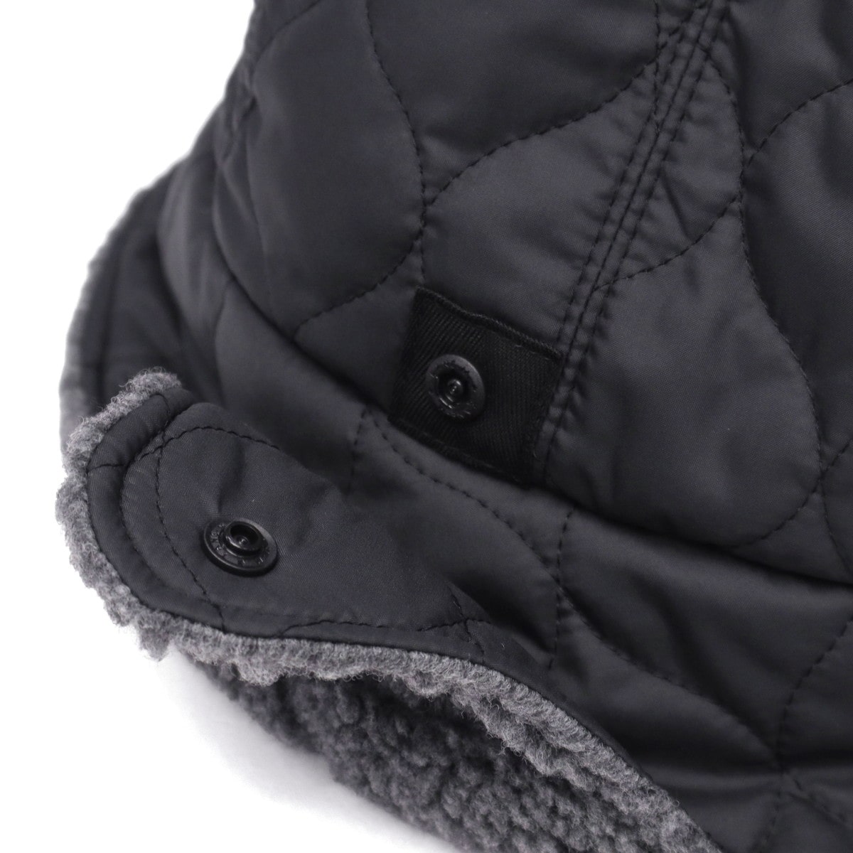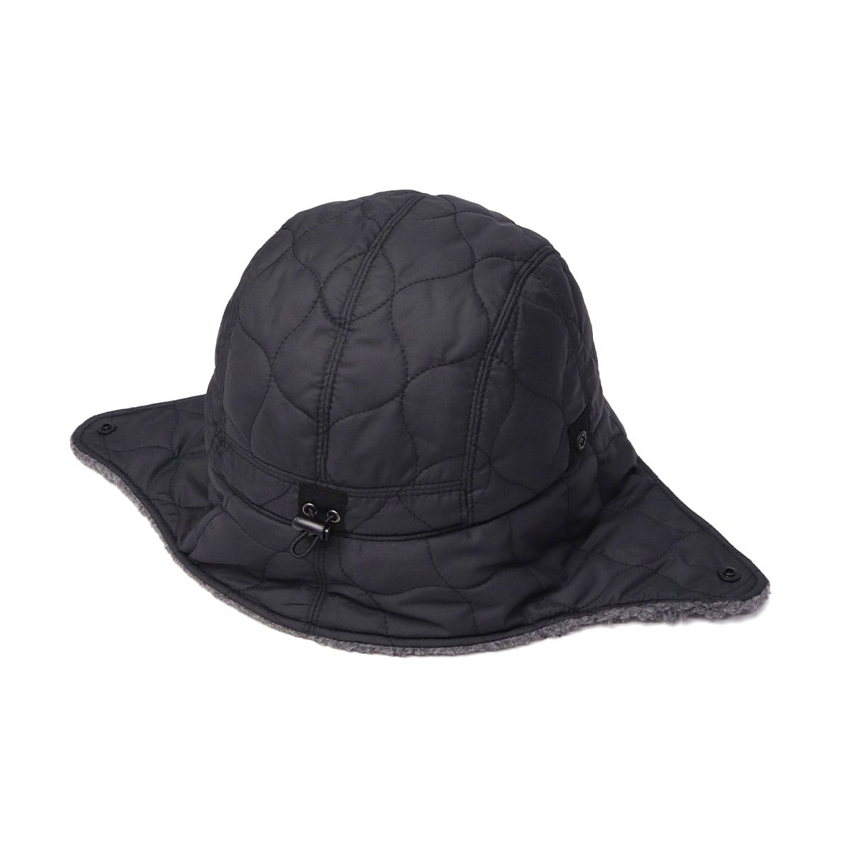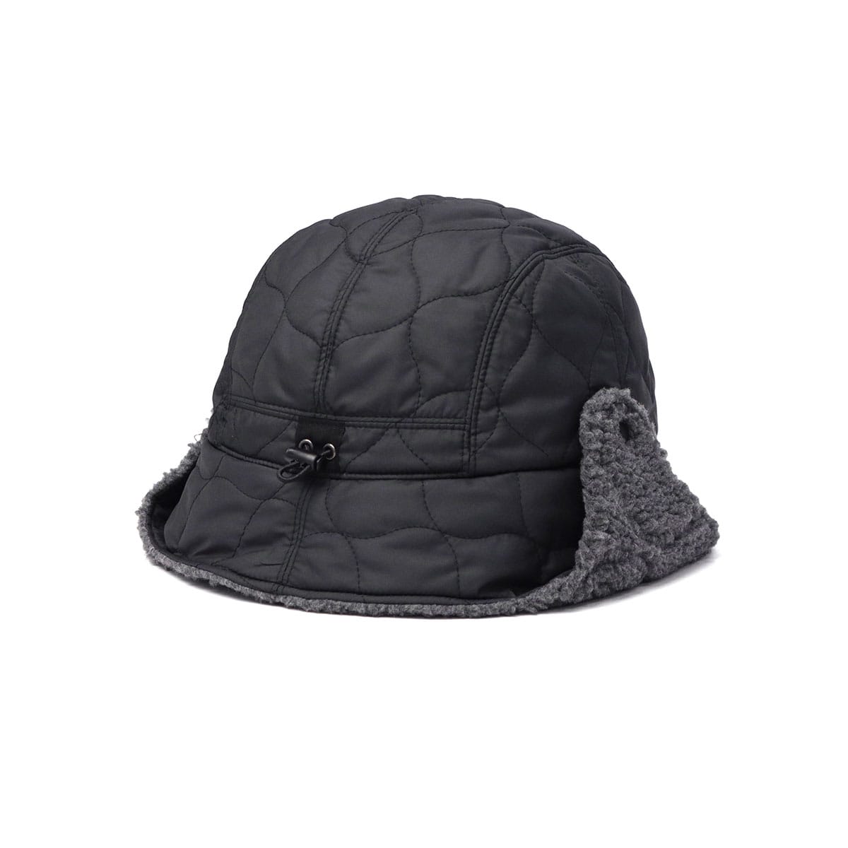 撥水加工のキルティング生地とボアを組み合わせた、リバーシブル仕様のハット。ブリムと一体化したシコロは上げ下げが可能です◎。防寒対策としてもオススメのユニセックスアイテムになっています。