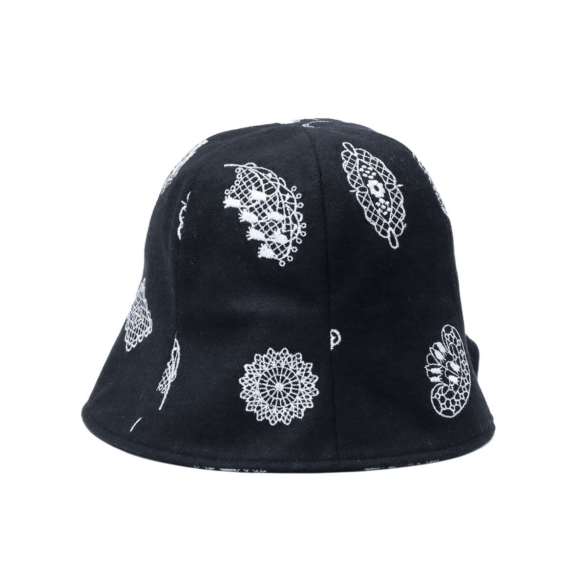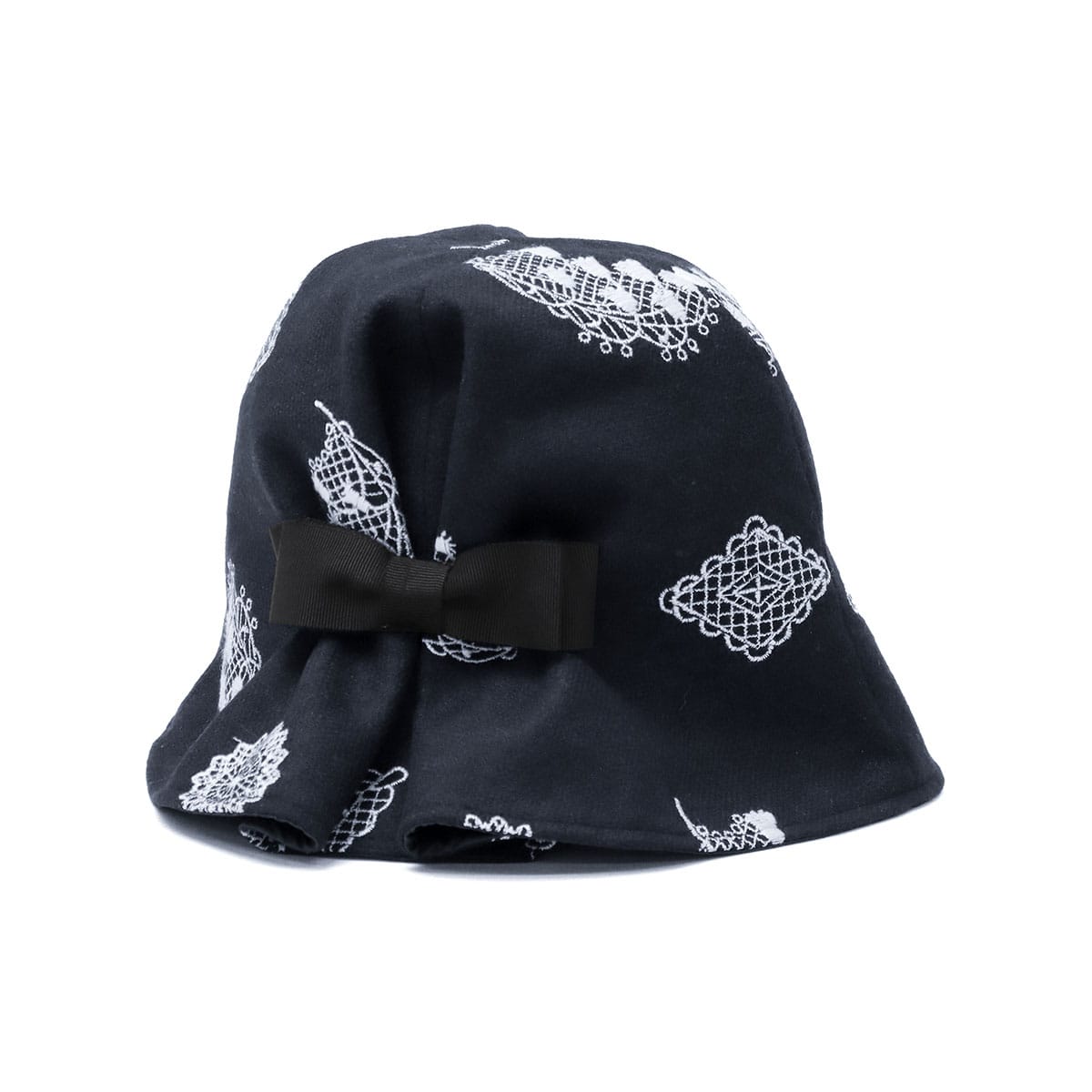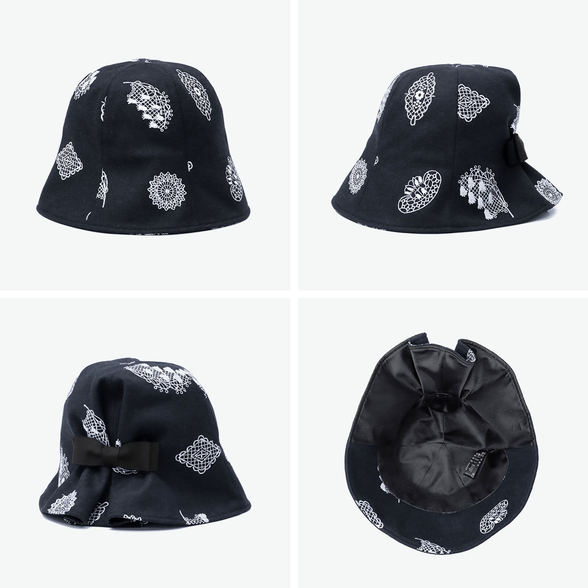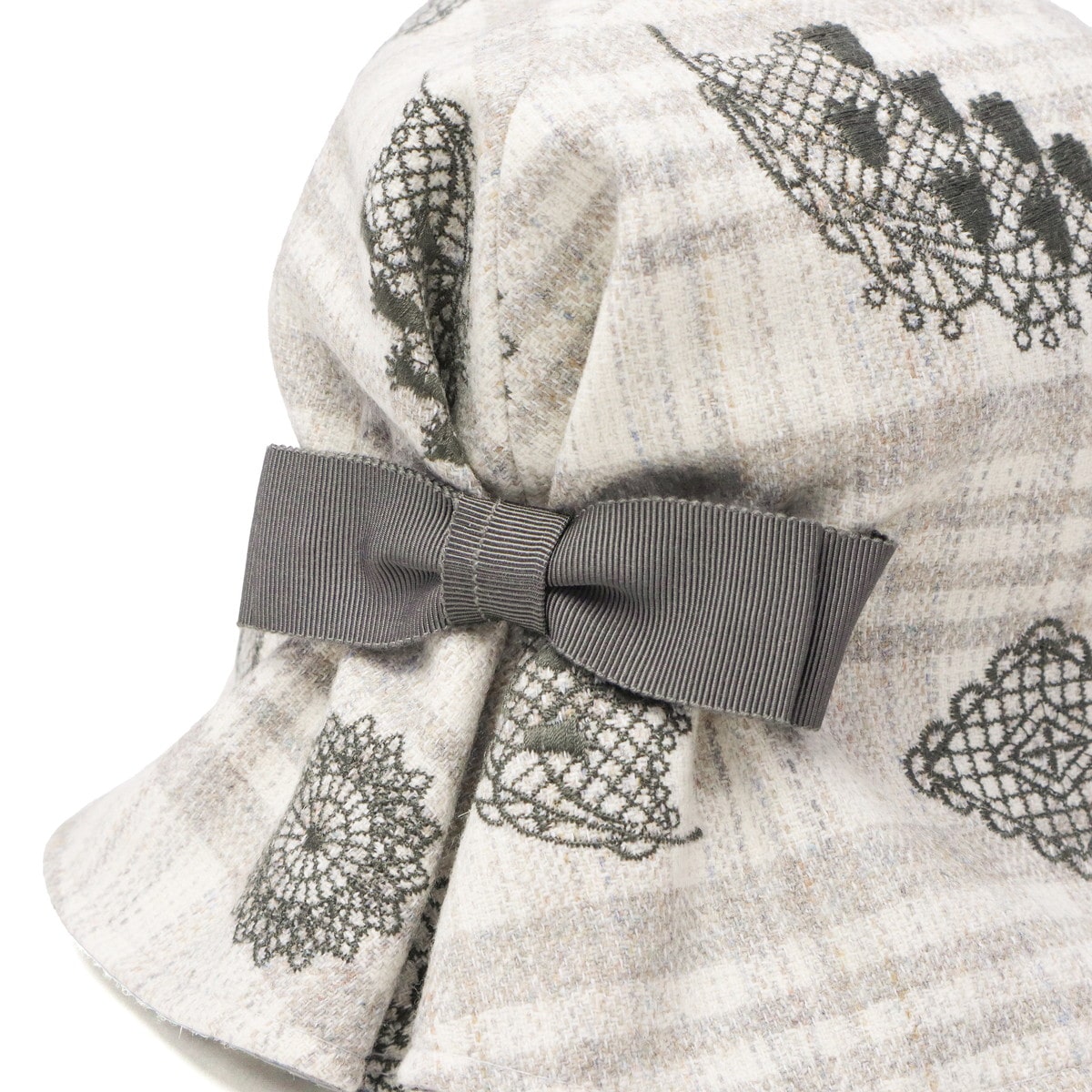 オリジナル生地で仕立てたCA4LAのチューリップハット。すずらんとレースモチーフの刺繍に、後ろの小さなリボンが愛らしさをプラス。丸みのあるクラウンとゴム仕様で、快適なフィット感を実現。環境に配慮したリサイクルウール×リサイクルポリエステル素材を採用。秋冬コーデのアクセントに最適なアイテムです。