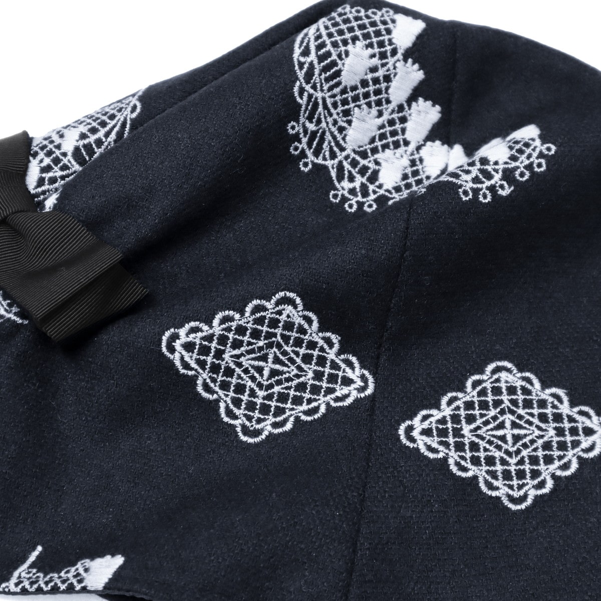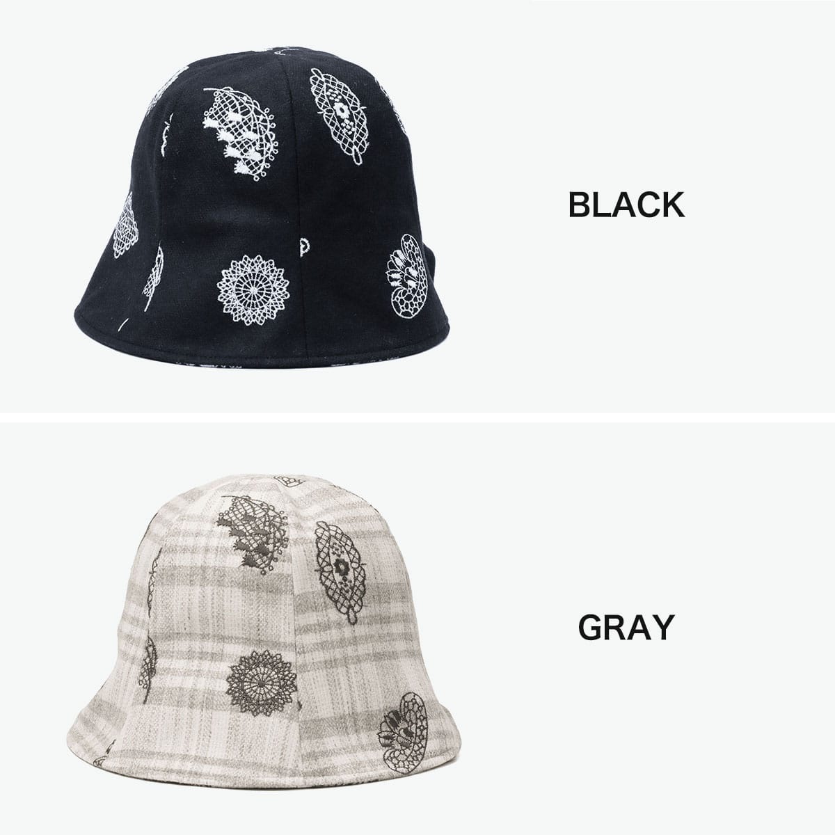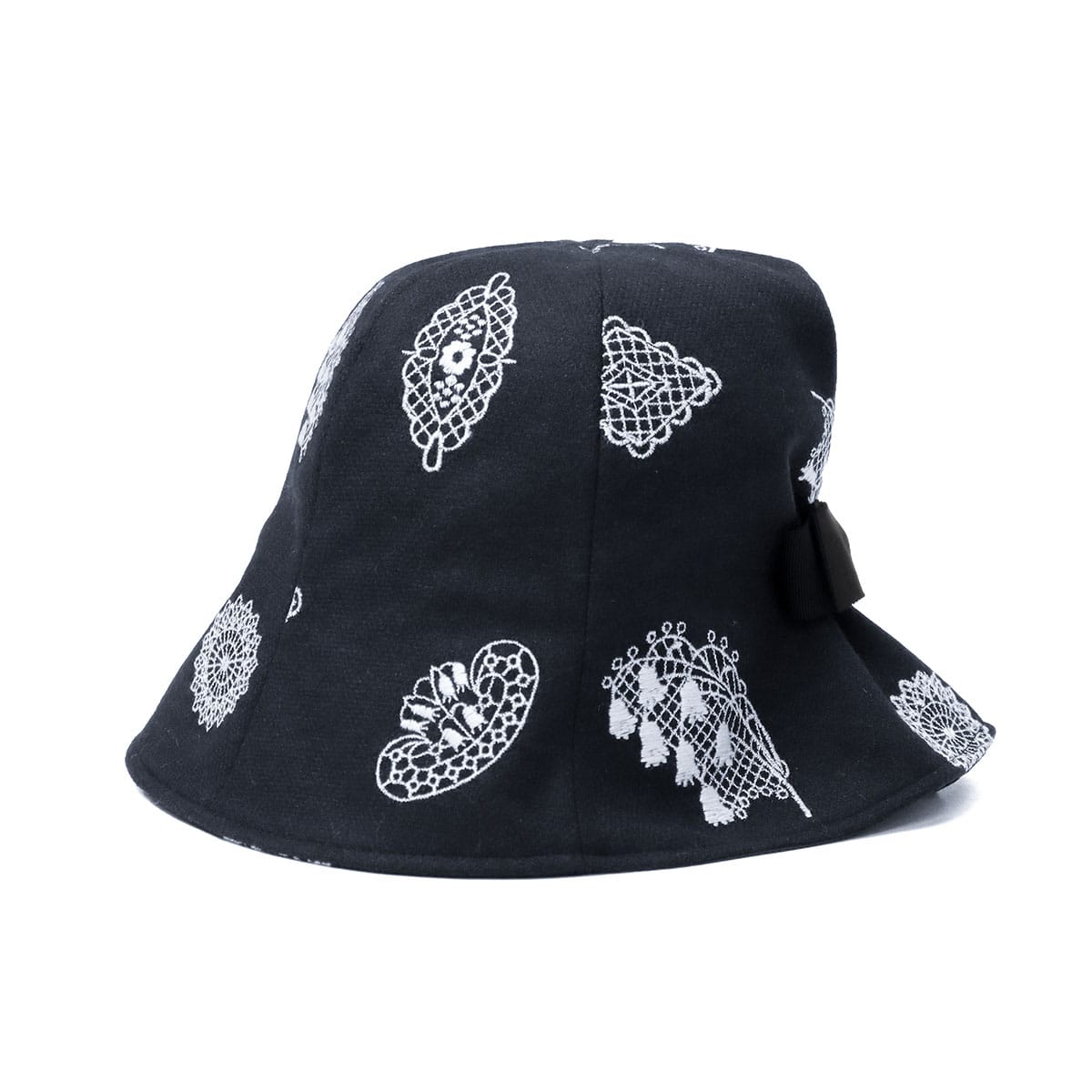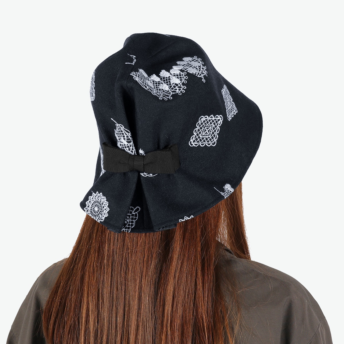 オリジナル生地で仕立てたCA4LAのチューリップハット。すずらんとレースモチーフの刺繍に、後ろの小さなリボンが愛らしさをプラス。丸みのあるクラウンとゴム仕様で、快適なフィット感を実現。環境に配慮したリサイクルウール×リサイクルポリエステル素材を採用。秋冬コーデのアクセントに最適なアイテムです。