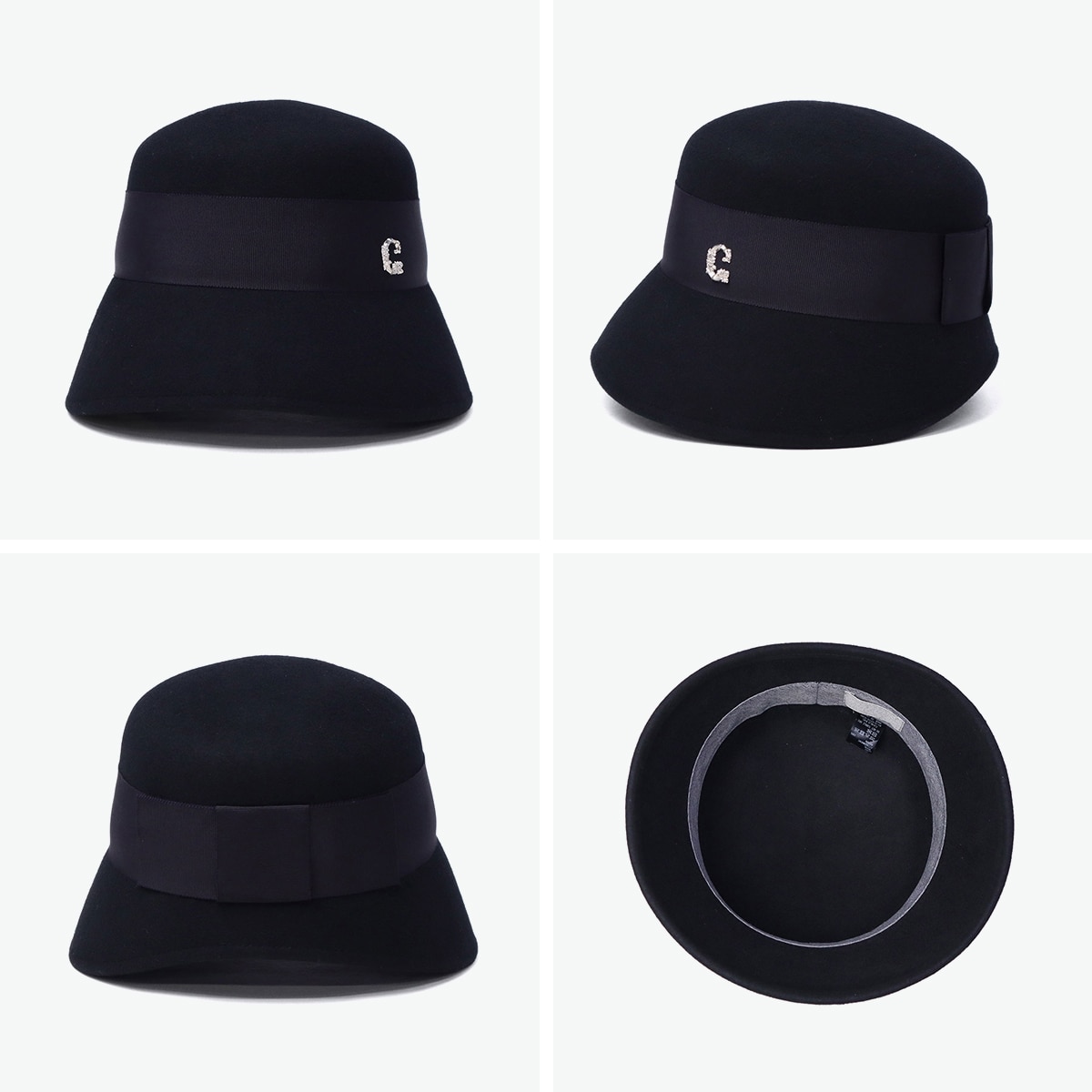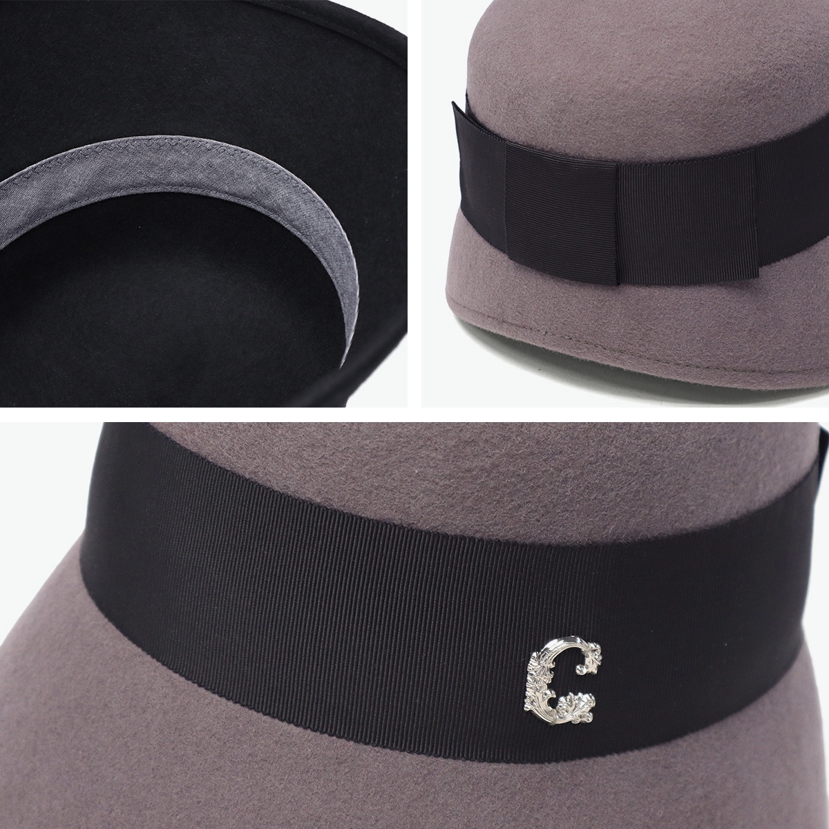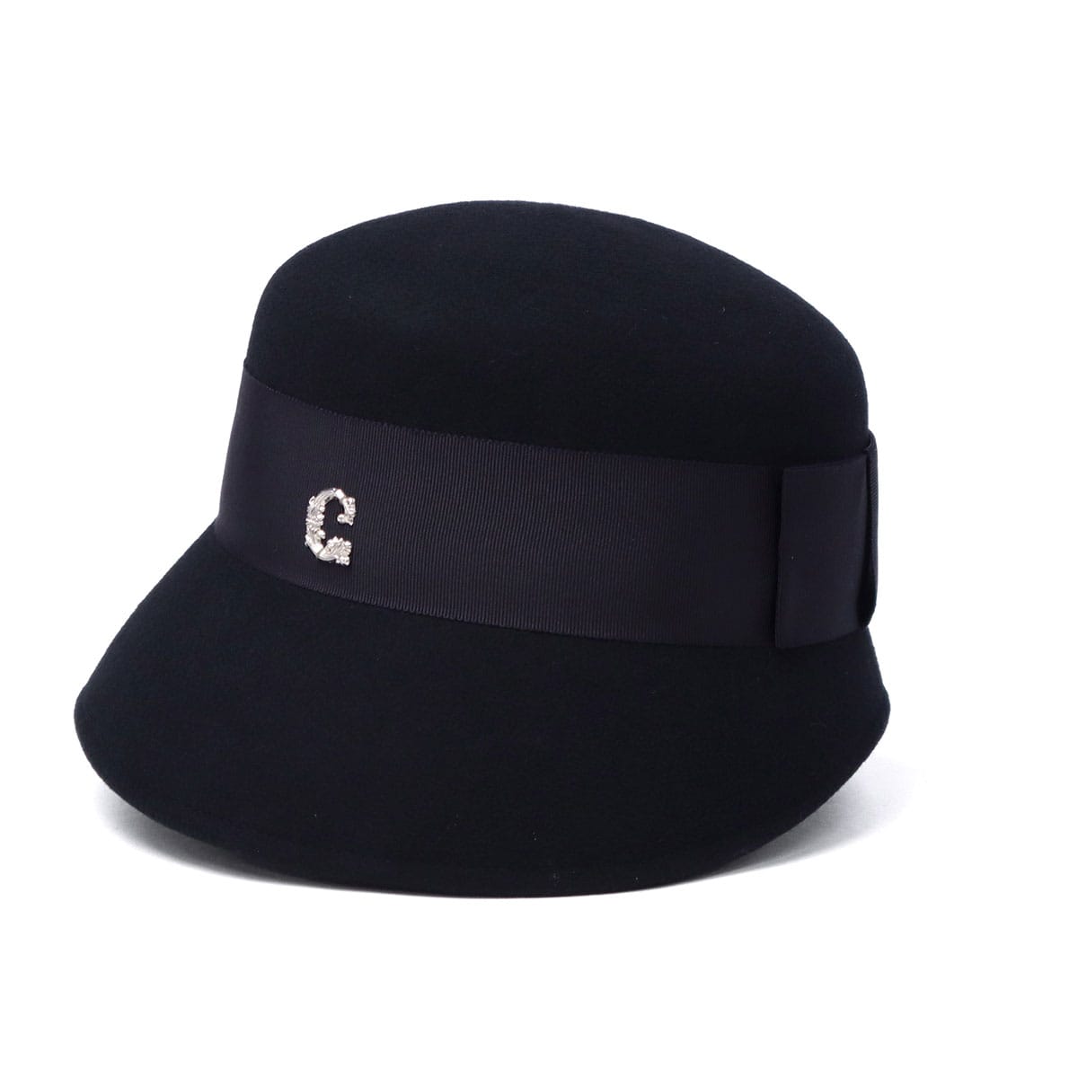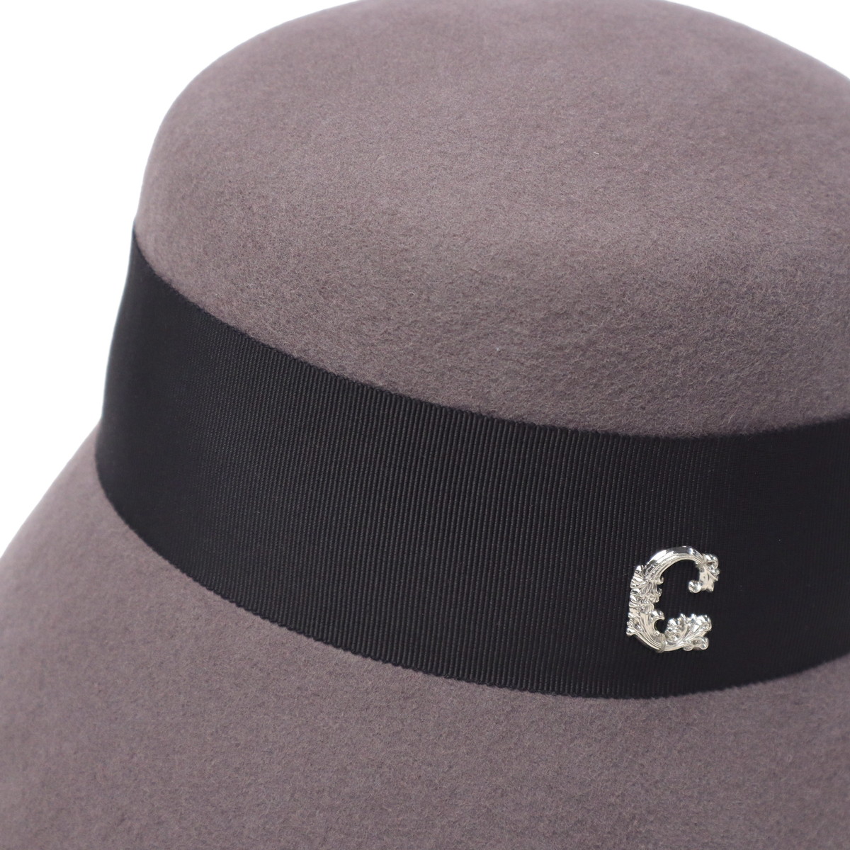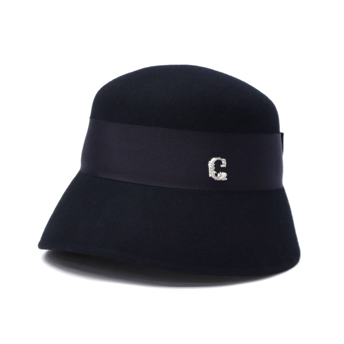 しっとりとしたウールフェルトの質感が、大人の落ち着きを感じさせるハットです。丸みのあるクラウンに長めのダウンブリムを組み合わせ、クラシカルで上品な印象に。腰部分に巻いた太めのリボンとCパーツがさりげないアクセント。シンプルながらも大人の女性らしさを引き立てるデザインで、秋冬コーデをエレガントに仕上げます。