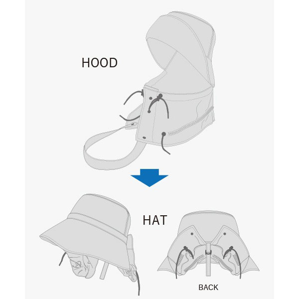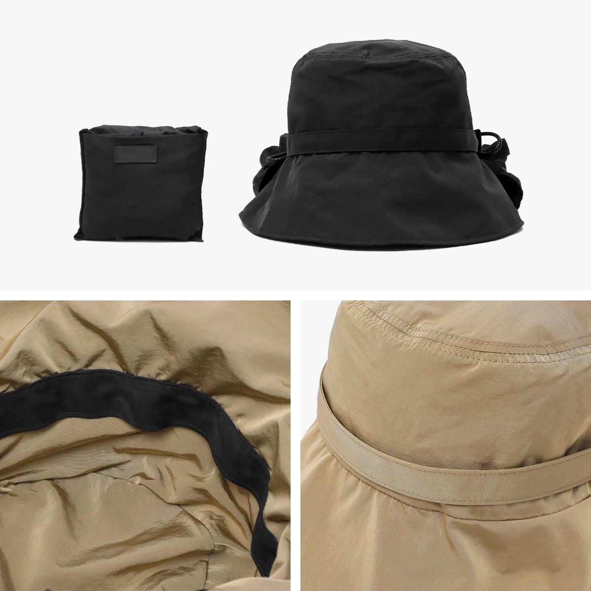 オールシーズン被れる機能性抜群のハット。UVカット・遮光・撥水・防風など、実用性に優れた機能がポイントです。リボンをほどけばフード風のシルエットに変形し、首元までしっかりカバーできます。ご家庭での手洗いが可能なので、汗や汚れを気にすることなくシーズンレスで使用可能。コンパクトに折りたためるため、普段使いはもちろん、旅行にもぴったりなアイテムです♪