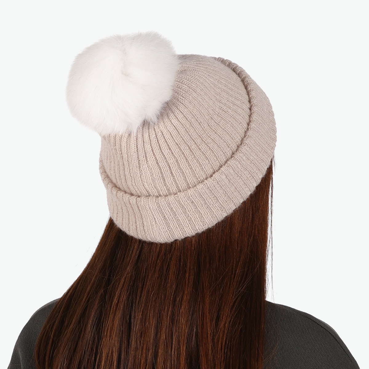 北欧産のフォックスファーポン付きのニット帽。密度の高い上質なファーで、冬の装いに華を添えます。本体はスーパーキッドモヘアとシルクを混紡した贅沢な素材で、チクチク感のない滑らかな肌触りに。リブ編みの柔らかなフィット感と程よい伸縮性で、長時間の着用も快適です。ポンポンは取り外し可能で、他の小物にも使用可能。カジュアルからキレイめまで幅広くマッチし、プレゼントにもおすすめのアイテムです。