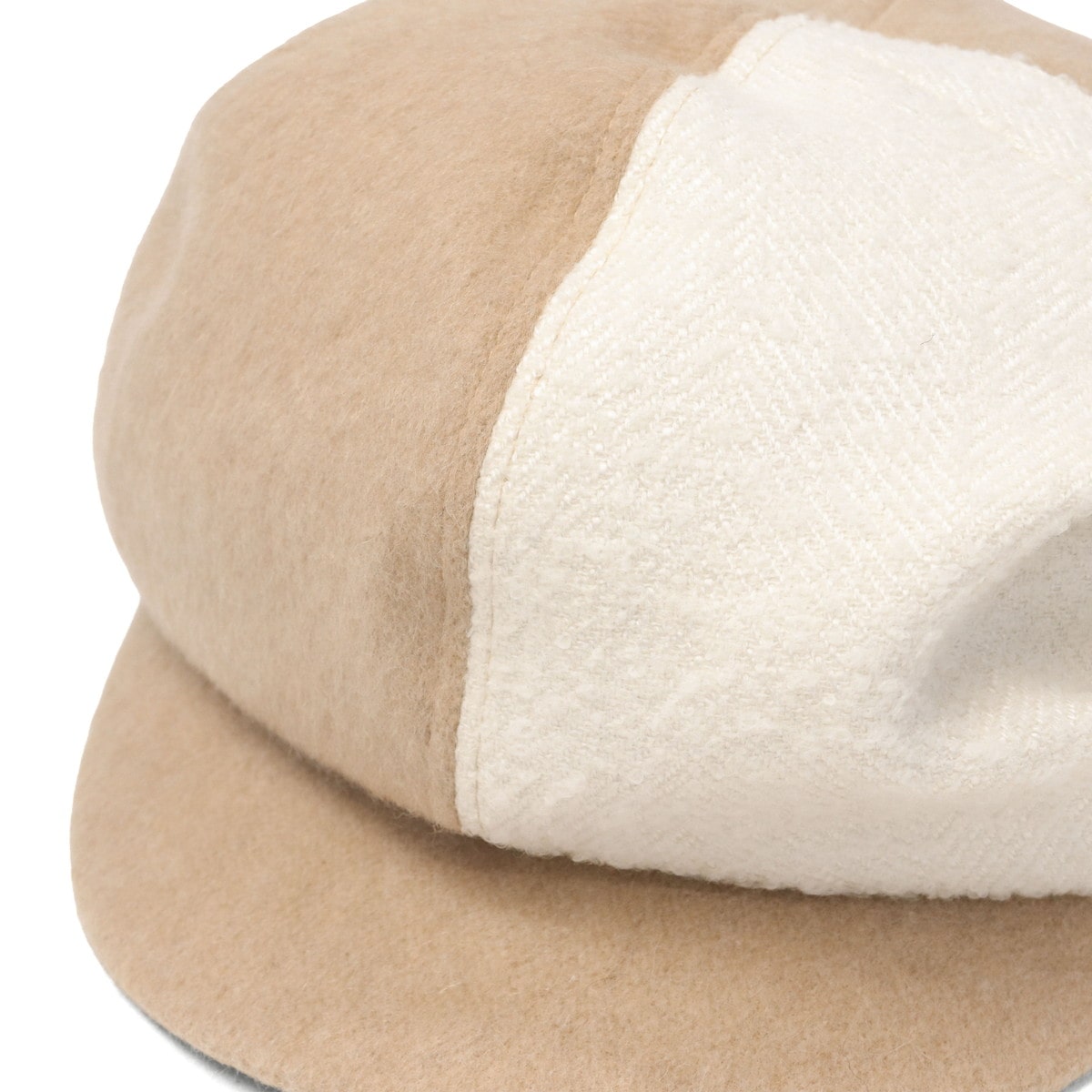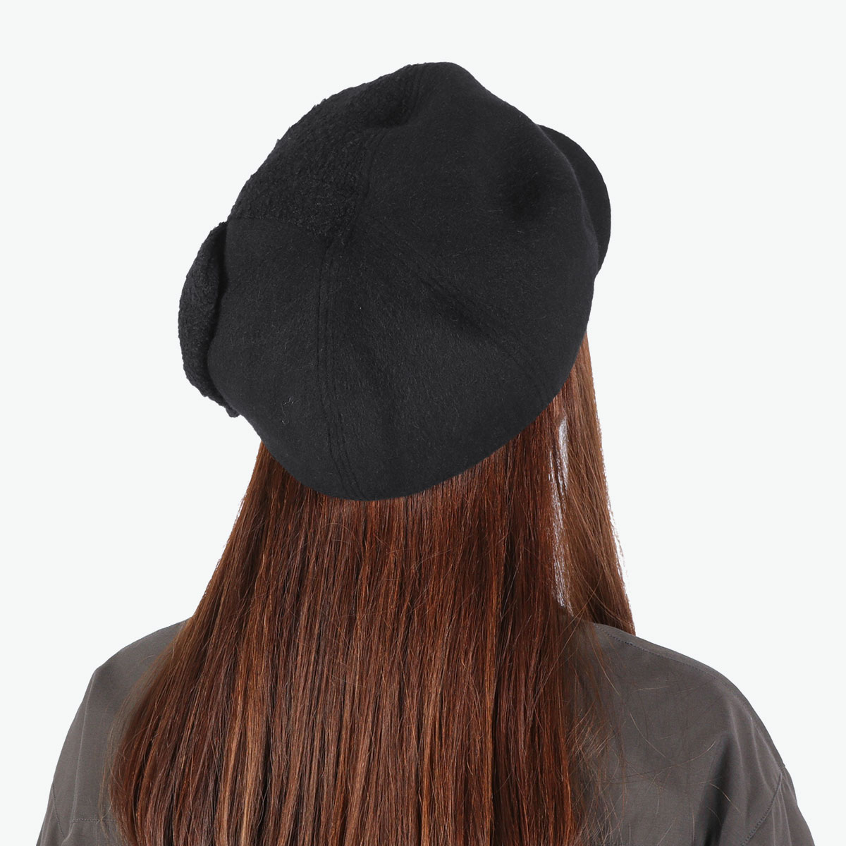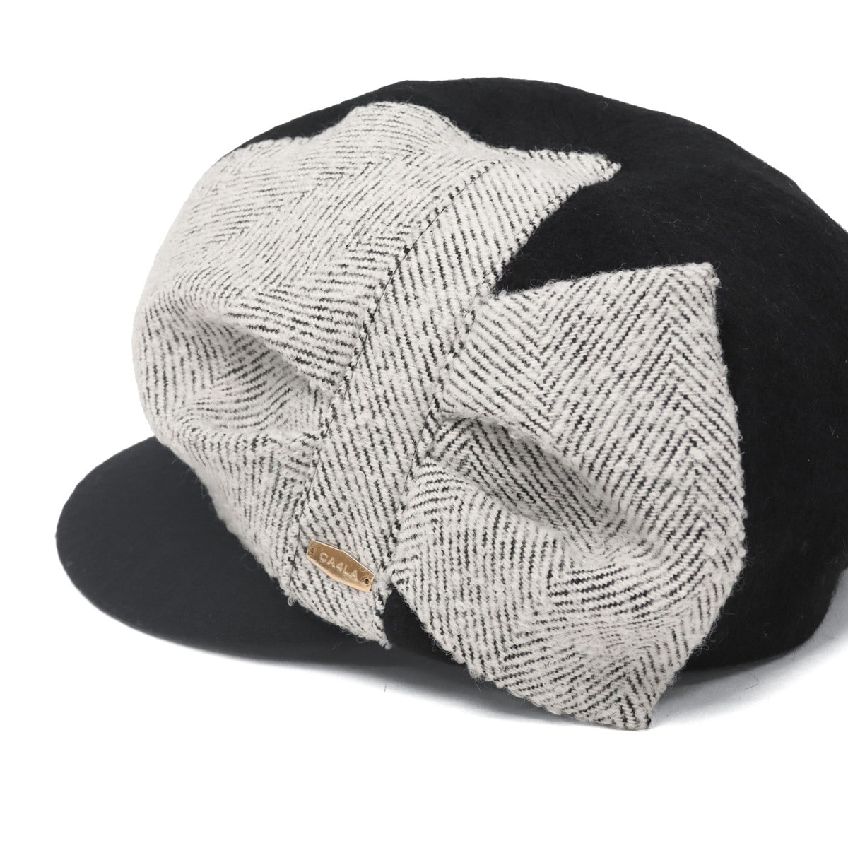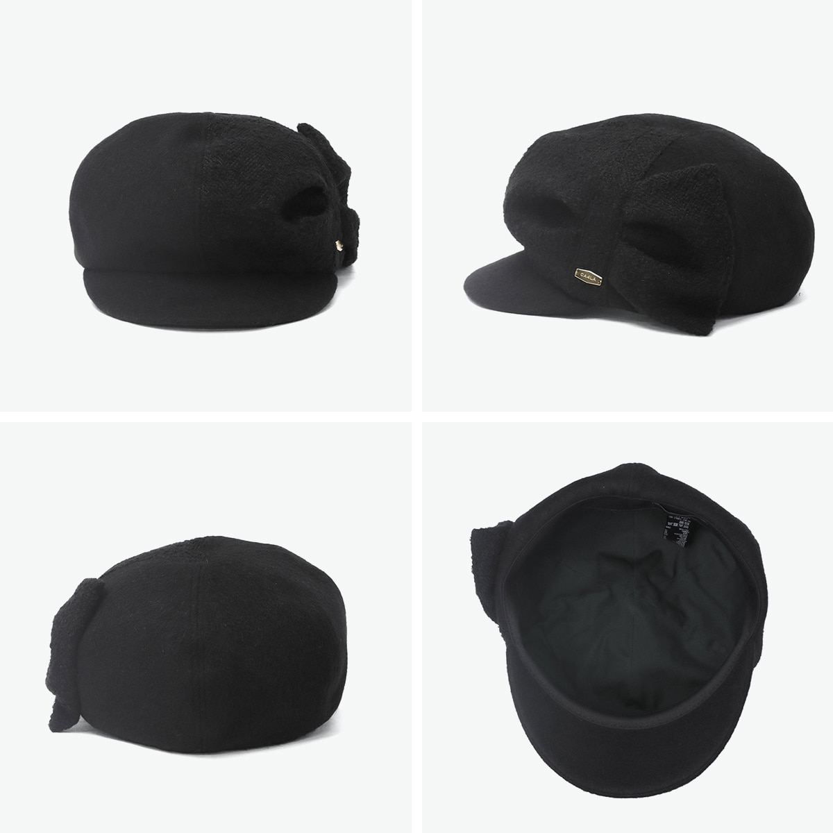リサイクルウールを取り入れたサステナブルな素材で、ふんわりとしたクラウンとリボンが一体化したようなデザインが魅力のキャスケットです。ほどよいボリューム感が顔まわりを包み込み、小顔効果で女性らしい印象を演出します。カジュアルからきれいめまで幅広いスタイリングに活躍します。