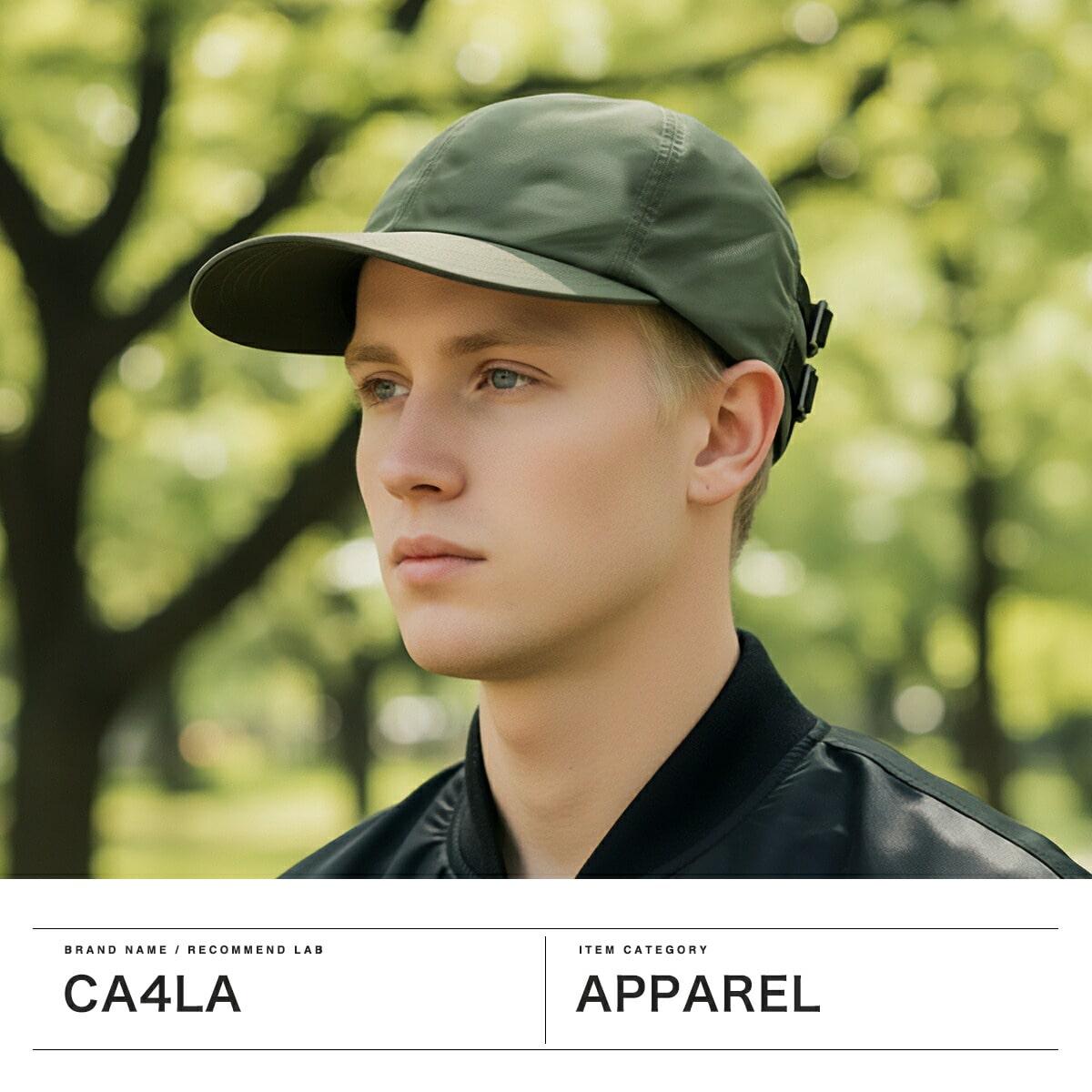 ヴィンテージのMA-1から着想を得て、ミリタリーテイストを随所に取り入れた2連ベルト付きキャップ。撥水性に優れた高密度ナイロンを使用し、手洗いも可能。ベーシックな6パネルシルエットに、細部のディテールと素材感で大人のこなれ感をプラス。ユニセックスで使える万能アイテムです。