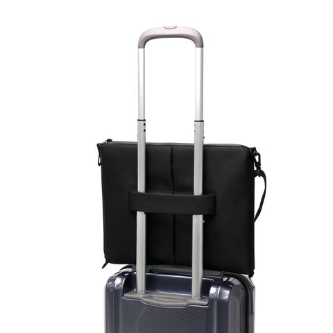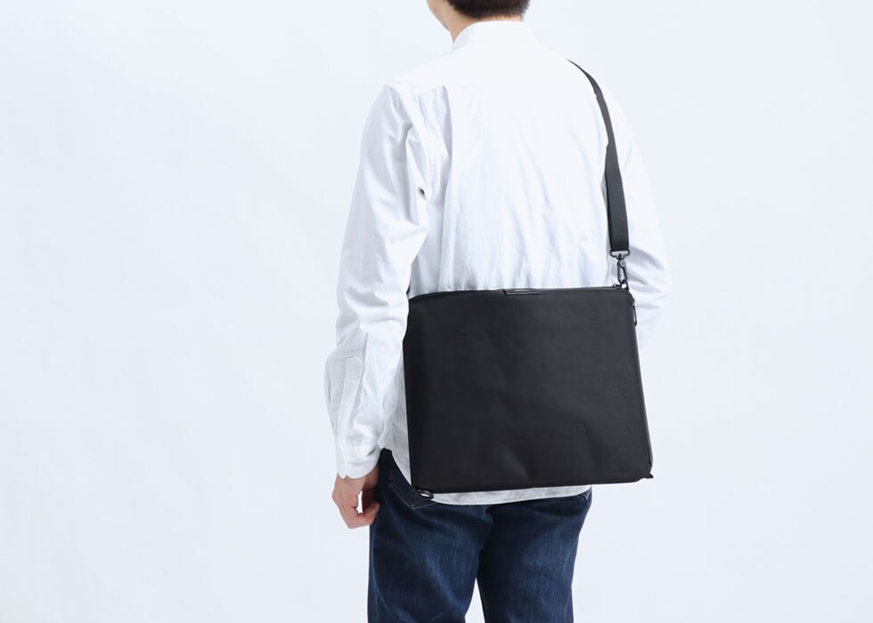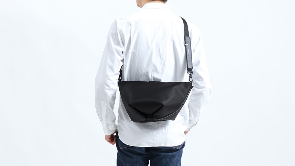 マルチなストラップにより、縦・横を自在に持ち替えられるショルダーバッグ。さらに底マチを作れるユニークな設計となっており、中に入れる荷物に応じてフォルムチェンジが可能。スーツケースに連結できるベルトやPC収納を設け、ビジネスシーンにも快適にお使いいただけます。