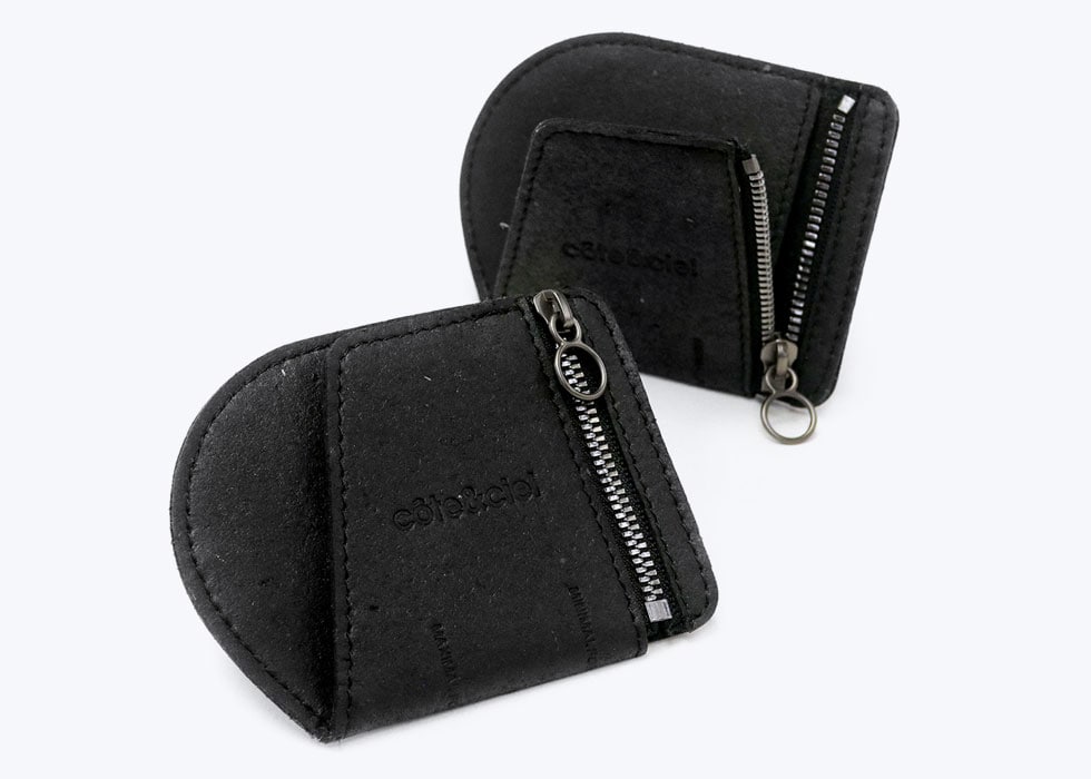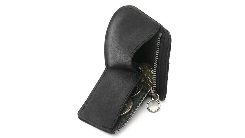 リサイクルレザーを素材に採用した、コインケース。リサイクルレザーとは革の端材などを集めて、レザーへとアップサイクルしたもの。本来破棄されてしまう端材を有効活用する環境に優しい素材です。ファスナーを開くと視認性の良い広々としたスペースが現れる、使いやすさにも配慮された個性的なデザインです。