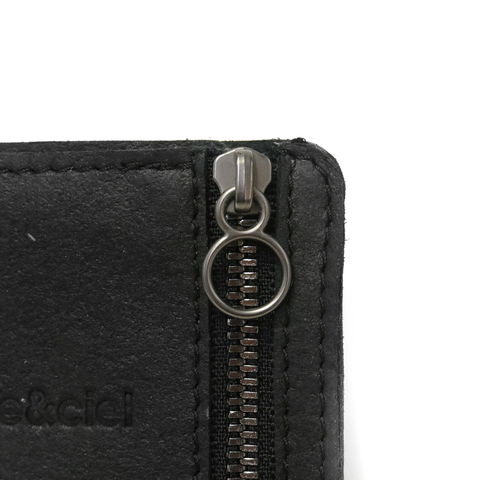 本体はファスナー開閉のメインスペースと、ポケットを1ケ設けたシンプル設計。大変すっきりとしたフォルムで、ポケットなどに入れて持ち歩いても邪魔になることもありません。また、ファスナーを開くことで折りたたまれたスペースが現れるため、視認性もよく取り出しもしやすい設計です。