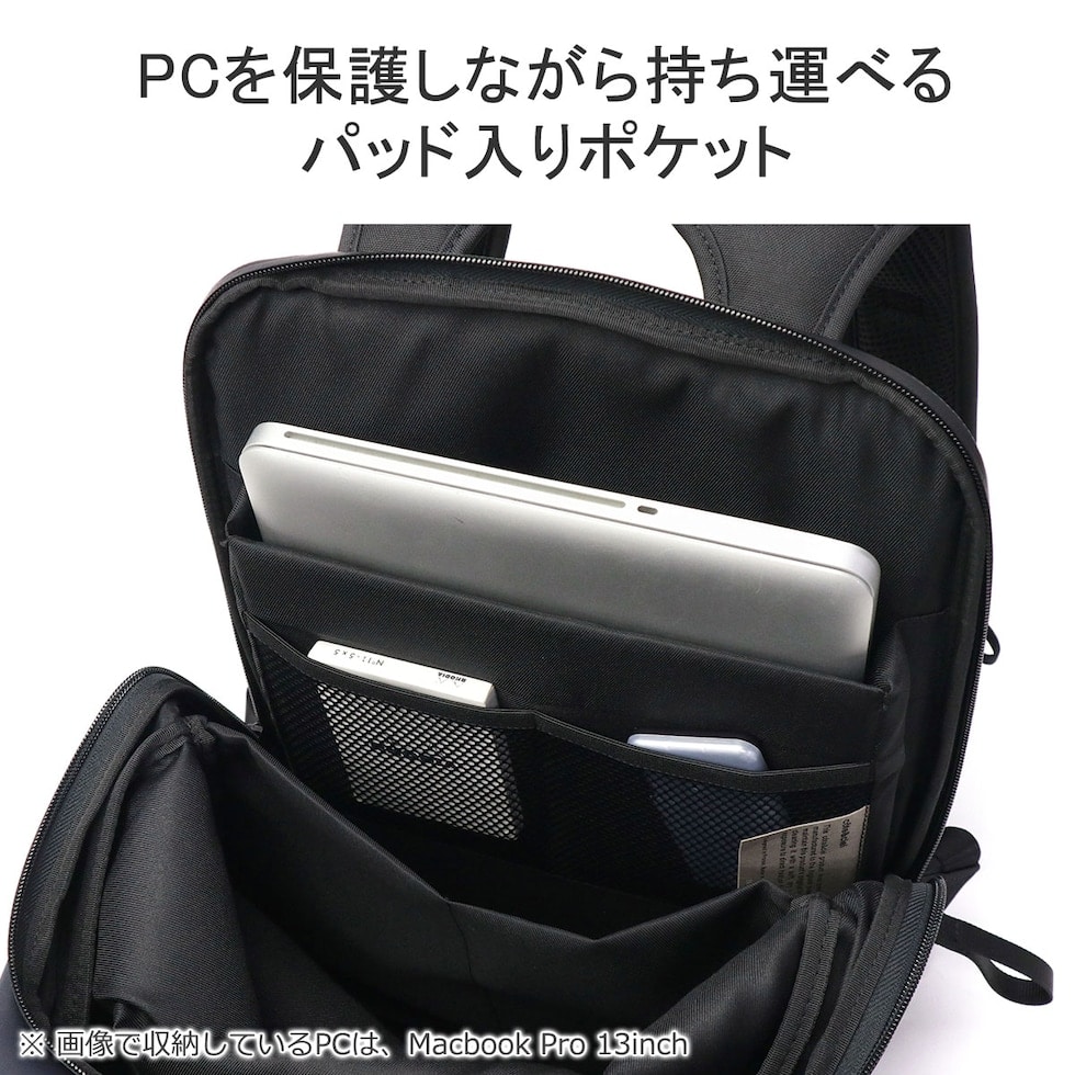 ・MacBook Pro 16inch(35.57cm×24.81cm×1.68cm)以上のサイズに該当するPCは収納できません。