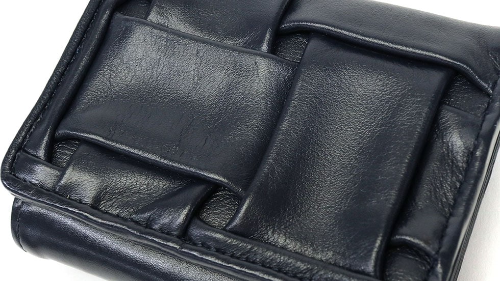 素材にはしなやかさを追い求めた柔軟な天然皮革を使用。スコッチガード加工を施すことで水や油を弾く力が持続し、お手入れが簡単に行えます。高度な職人技によって一枚一枚手作業で折りたたんだ、日本ならではの「折り紙」の技法によって形作られたデザインが特徴です。