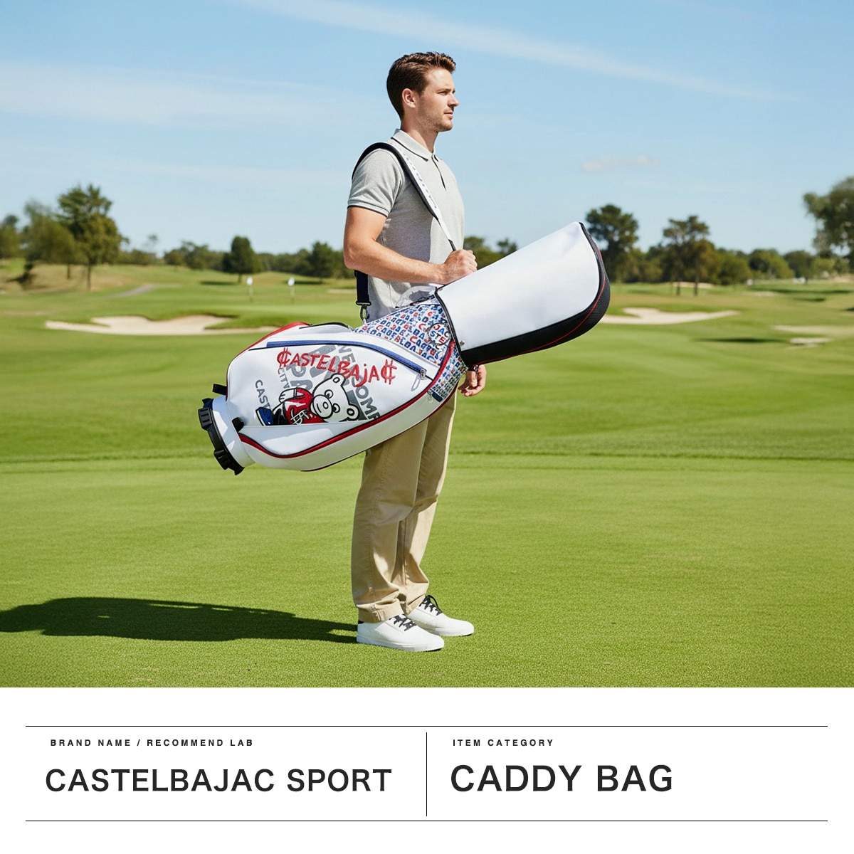 ポップでグラフィカルな個性が光るデザインと機能性を兼ね備えたキャディバッグ。テディベアのアートワークとパンクなロゴを組み合わせた、クールでハードなスタイルがポイントです。ブランドらしい遊び心あふれる世界観が、ゴルフシーンを鮮やかに彩ります。