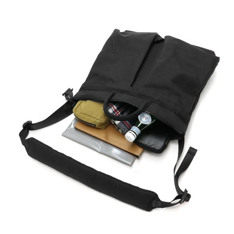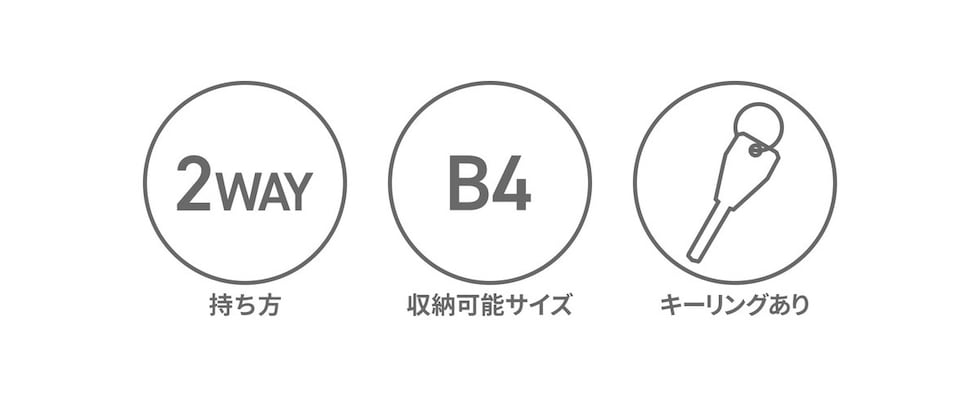 メインルームはB4サイズが縦に収まる大容量サイズで、内装に計3つのポケットを施した機能的なデザイン。外側にはボタン付きベルクロポケットやサイドにはキーフックを搭載したジップポケットも。また、ショルダーストラップには荷重を分散吸収して身体への負担を大幅に軽減する素材を用いり、普段使いや大量の荷物を入れた際にも幅広く活躍します。