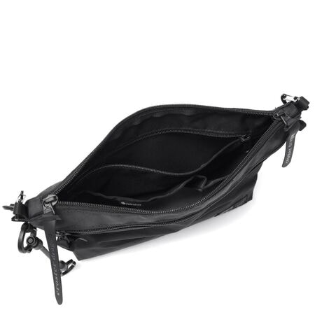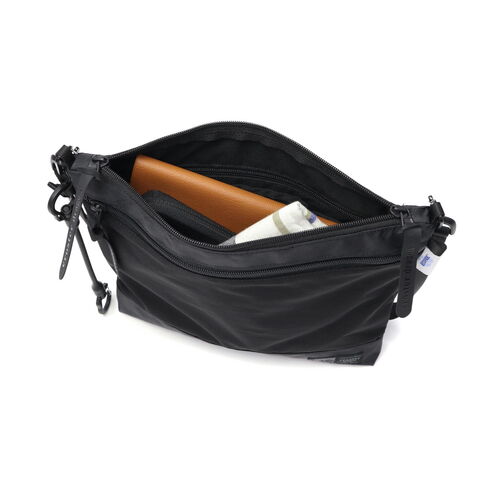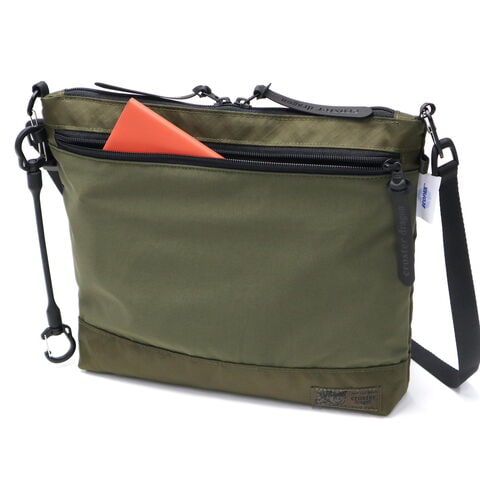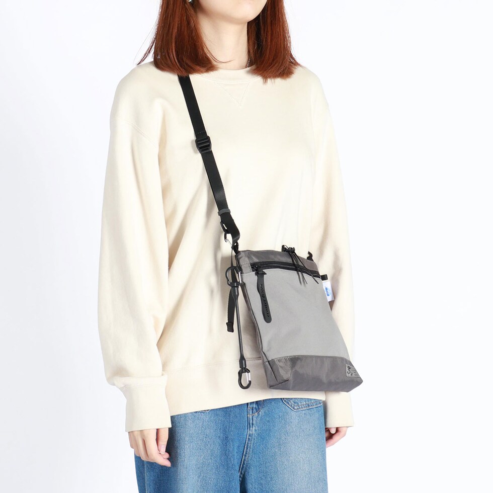 タウンユースに最適なカジュアルなクロスボディバッグ、EPX crossbody bag 4。薄マチのデザインながら、A5サイズの荷物が縦にも横にも余裕をもって収まるつくりなので、外出時の必要アイテムをしっかりしまえます。本体内側には表面に付着したウイルスを減少させる「バイラルオフ」素材を採用したポケットを設けている事や、ファスナー部分に撥水加工を施している等、機能的な素材使いで快適に使える仕上がりになっているのも魅力となっています。