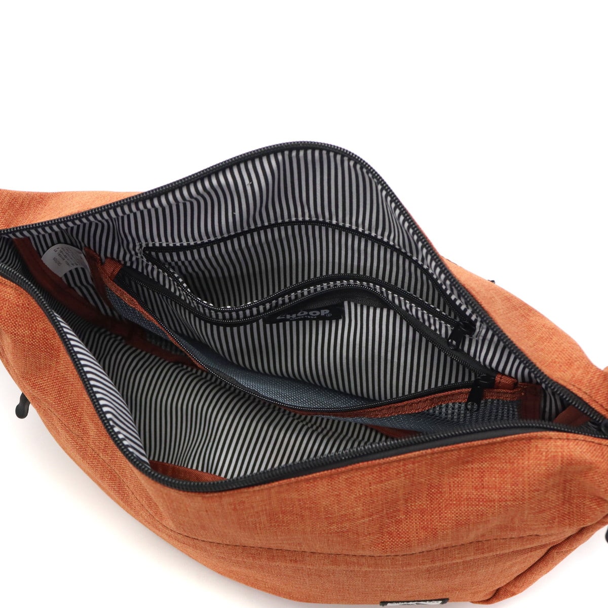 1994年に人気ブランドとして定着していた"リスのマーク"の『CHOOP/シュープ』。こちらは、使い勝手のよい大きめサイズのショルダーバッグL。ロゴマークはさりげなくデザインされ、ちょうどいいサイズ感と杢調生地のシンプルなルックスで日常に溶け込みます。