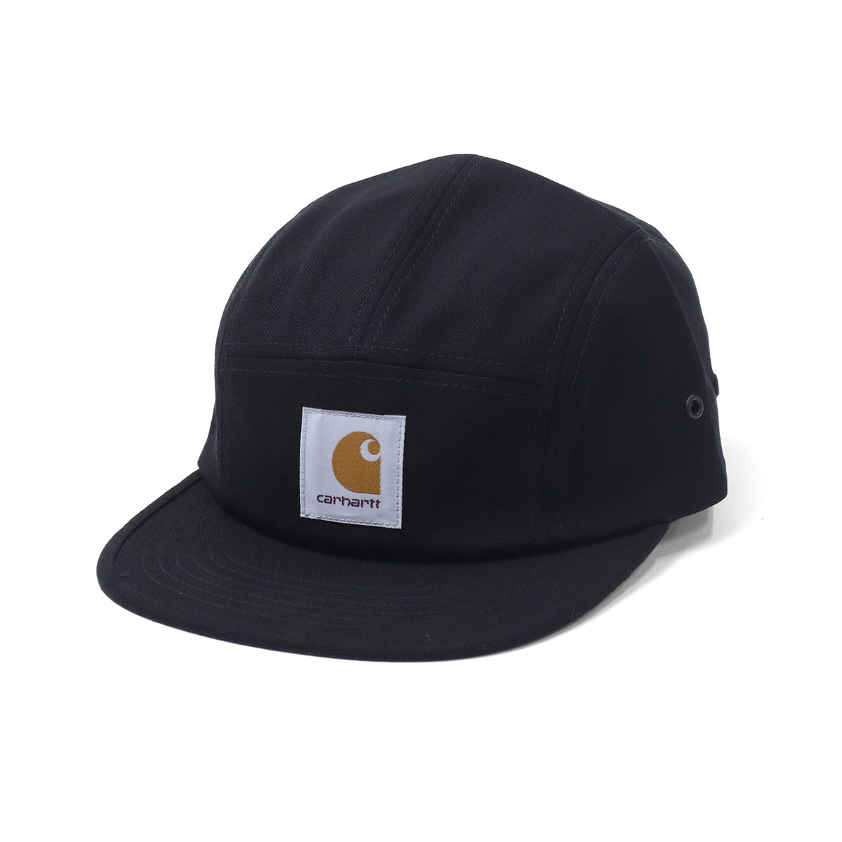 9.3オンスのコットンキャンバス地を使用した5パネルキャップ。補強されて型崩れしにくいフロントパネルや、しっかりとしたフラットバイザーが特徴です。サイドの金属製のアイレットが通気性を確保します。シンプルながらも、フロントのスクエアラベルがデザインの程よいアクセントに。被る人を選ばず、オールシーズン使える定番キャップです。