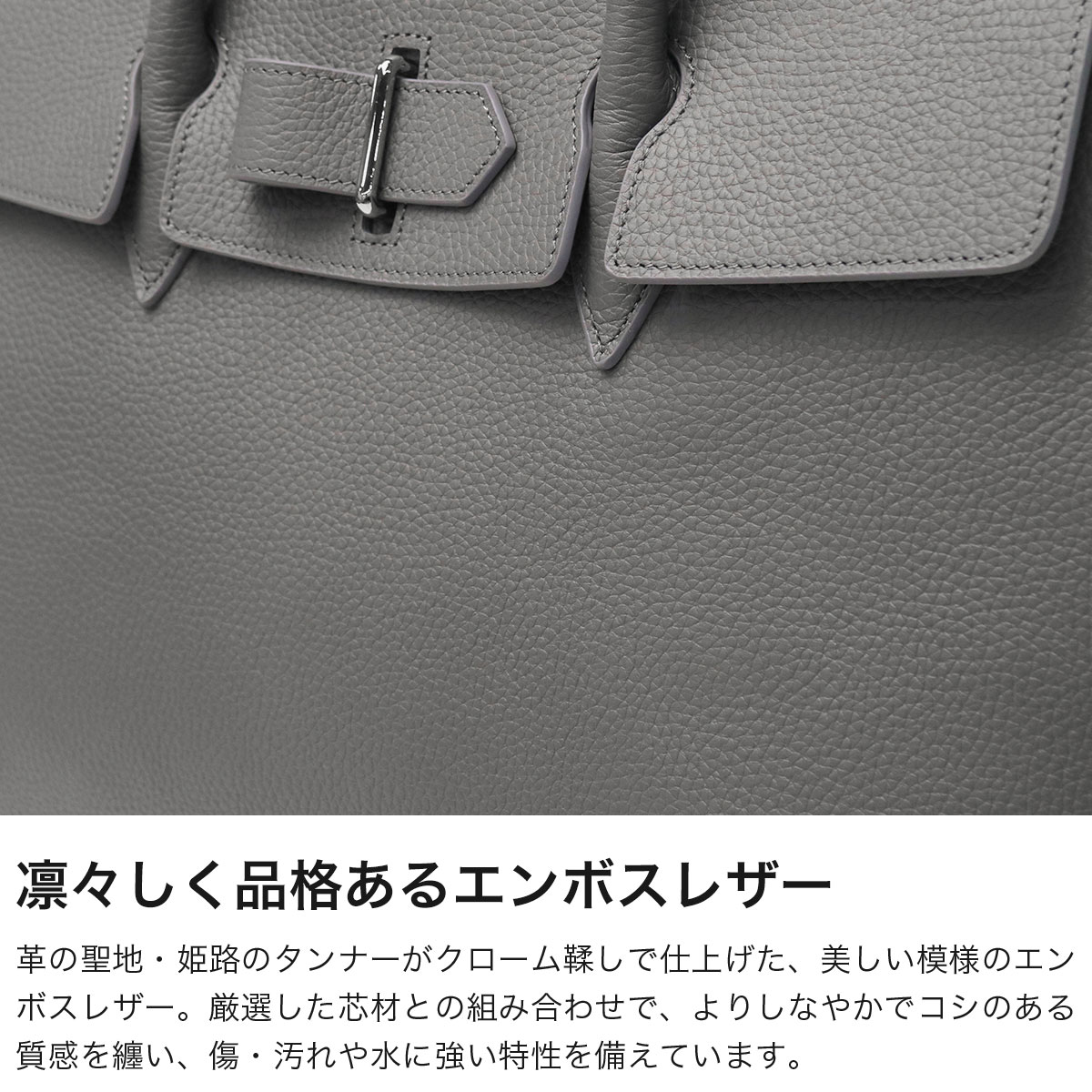 革の聖地・姫路の職人が手がけた、美しい模様のエンボスレザーが目を引くフラップトート。しなやかさでコシのある国産の牛革の素材は、傷・汚れや水にも強いタフで実用的な仕上がりです。抑揚の効いた構築的なデザイン設計をベースとしたボディに高く立ち上がったハンドルを備え、凛々しく品格ある魅力に包まれています。フラップを収納すればオープンスタイルでも使用可能。オンオフ兼用のバッグとして重宝する、大人のためのハイパフォーマンスな逸品です。