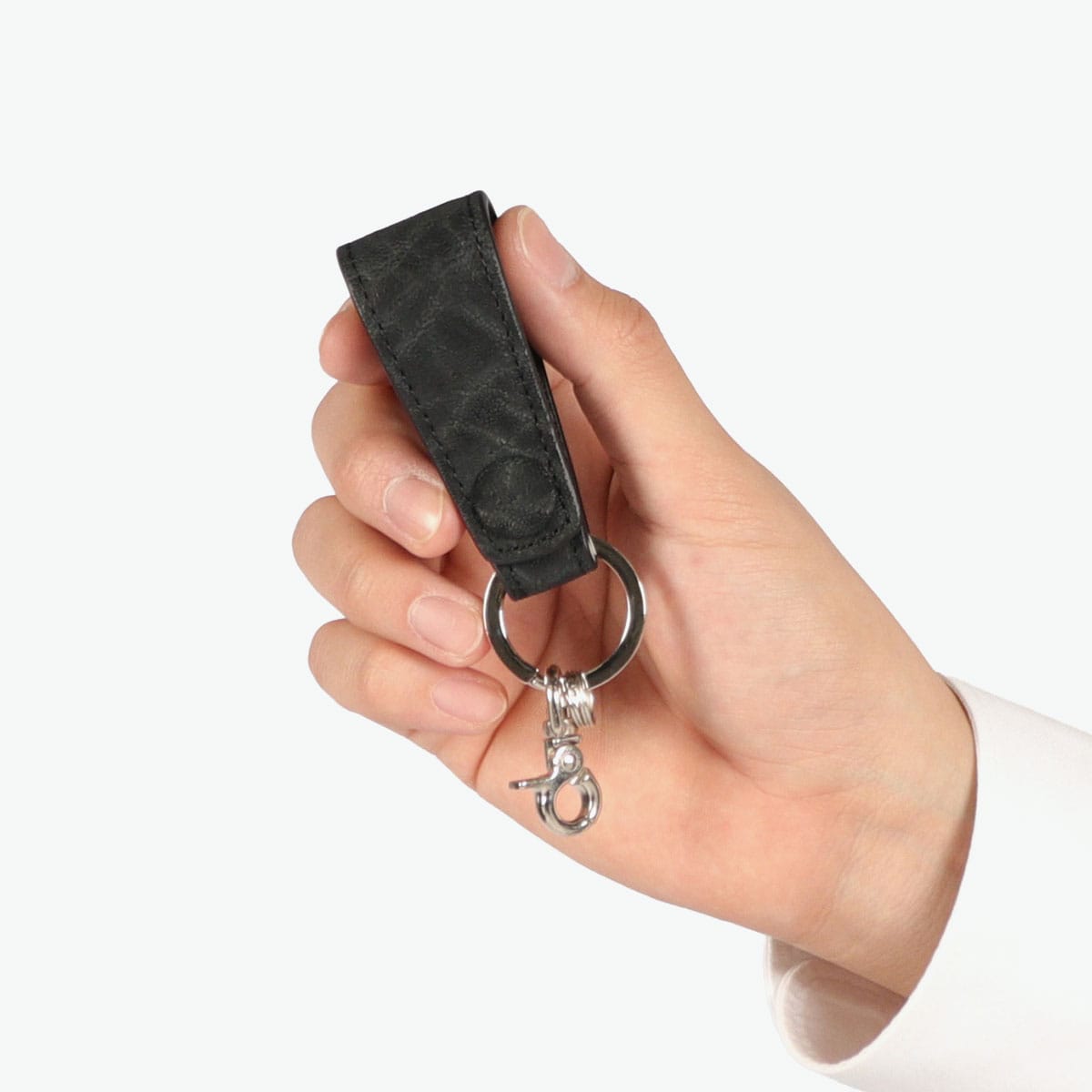 希少性の高い象革を使用した『エレファント』シリーズのキーホルダー。大胆なシワ模様や粒立った表面感はインパクトがあり、強靭でありながら唯一無二の個性を放ちます。ゴツゴツとした見た目とは裏腹に、繊細でなめらかな肌触りも魅力です。エレガントな雰囲気に力強さも宿したこだわりのカラーもポイント。実用面でも優れたポテンシャルを発揮し、手元に品格を添えてくれる一生ものの逸品です。