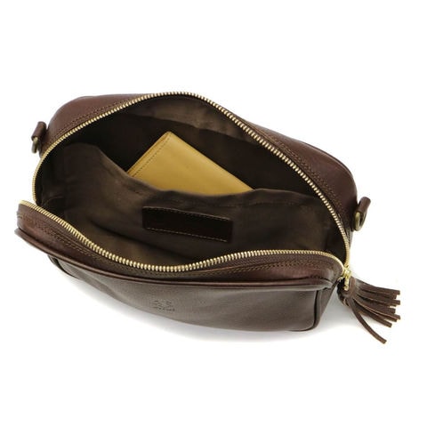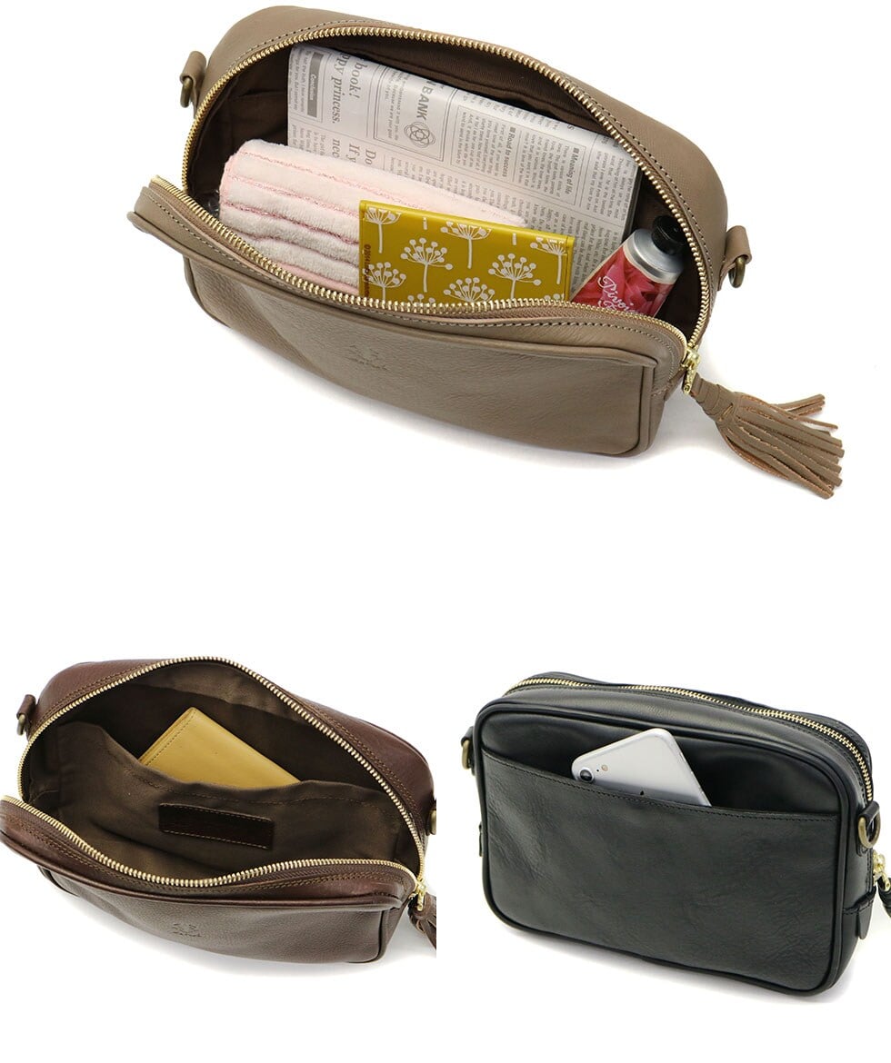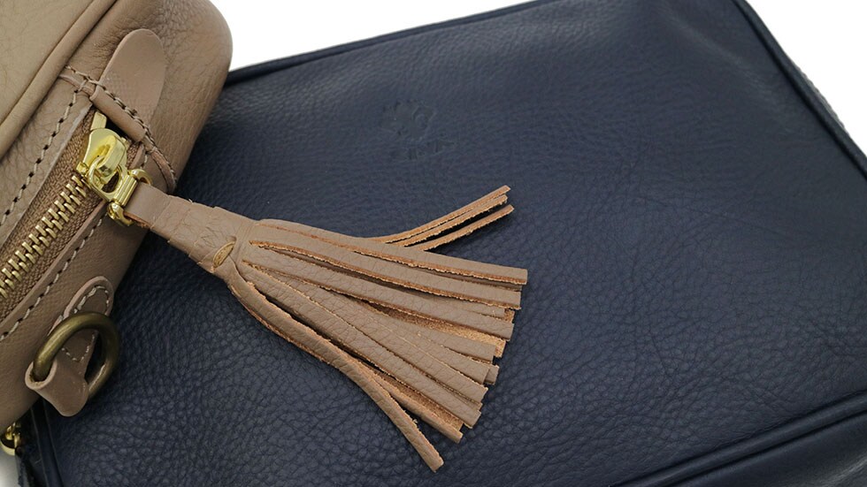 レザー本来の自然で不均等なシボとソフトな風合いが魅力的な『VOLANATO』シリーズのショルダーバッグ。引手に付いたタッセルがデザインのポイントで、ショルダーベルトを取り外してポーチやクラッチとしても使いやすいアイテムに仕上がっています。