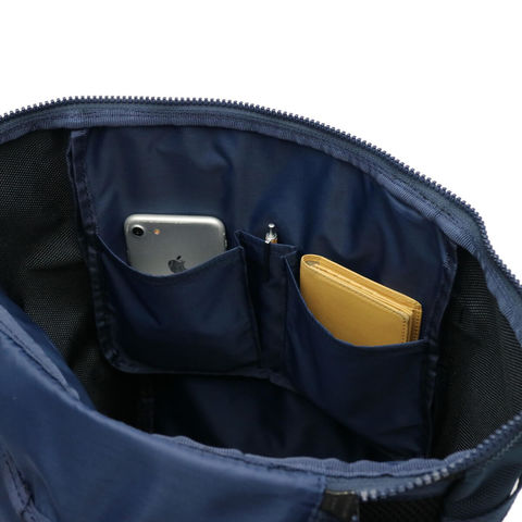 収納部はB4サイズに対応し、小分けポケットにペンホルダー、ノートPC用のポケットも装備しています。外側にもポケットを設けているため、収納力だけでなく小分け収納にも長けたつくりになっています。
