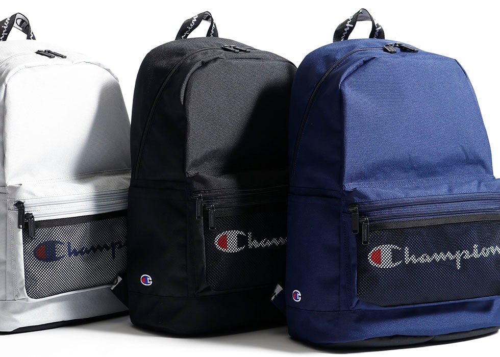 カジュアルシーンで人気のブランド『Champion/チャンピオン』のリュックサック。リュックストラップ部分に使用したブランドロゴテープと、フロントのメッシュポケットがデザインのポイントです。1日の荷物の収納にぴったりなサイズ感で、普段使いから通学にもオススメです。