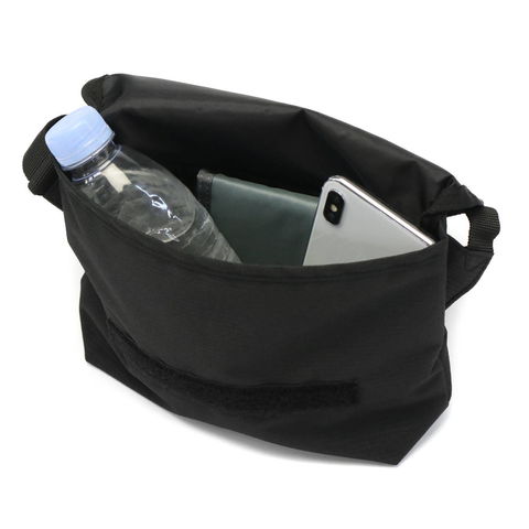内装へはベルクロ仕様のかぶせを開いて、スムーズにアクセス。程よくマチを備えたメインルームは二つ折り財布とスマホの収納にぴったり。小分けポケットを1ヶ備えたデザインですっきりと整頓でき、リップや鍵などの細かいアイテムをすぐに見つけられます。