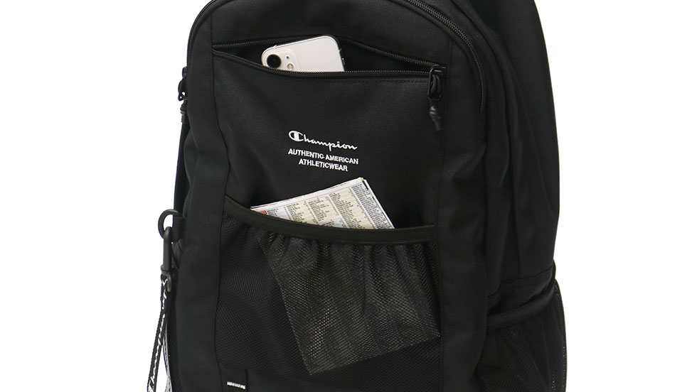 ベーシックデザインに、フロントロゴ刺繍とオリジナルチャームが映えるスタイリッシュなリュック。豊富な容量と充実の収納機能を設け、通学や部活、休日のお出掛けまでシーンを問わずに使えるデザインです。本体背面やリュックストラップ部分にはクッション性がある為、いつでも快適に使えるのもポイント。
