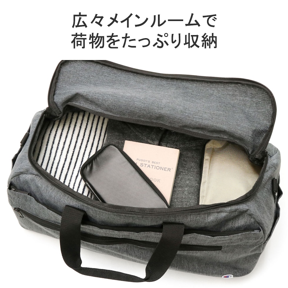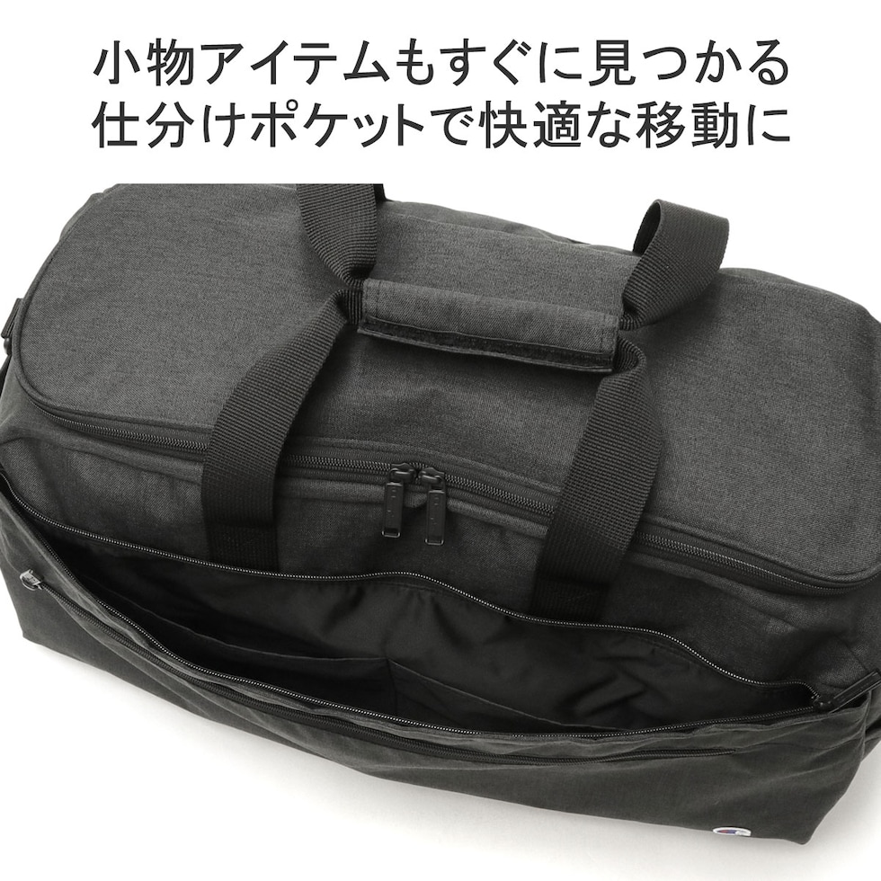 カジュアルシーンで人気のブランド「チャンピオン」の2WAYボストンバッグ。容量は、1?3泊程度の荷物がすっきり収まる43Lサイズです。大きめながらも、アウトポケットが充実した仕分けのしやすい設計が魅力的。シンプルなルックスに使い勝手の良さを備え、プライベートの旅行から合宿や修学旅行まで、場面を問わず使用できる仕上がりとなっています。
