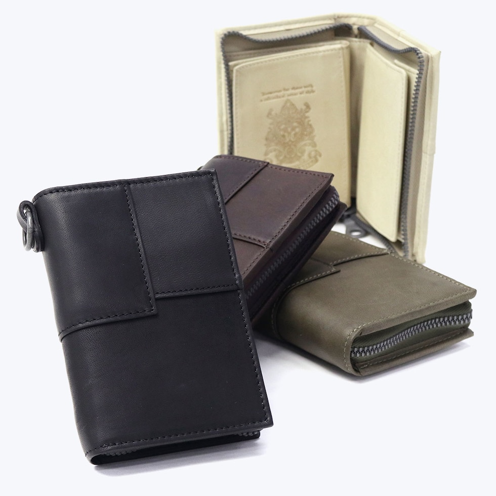 風合い豊かな馬革を使用し、素材の持つおおらかな魅力を打ち出した『equines/イクワインズ』シリーズ。ひとつひとつ異なる革の個性的な表情が生きた、パッチワークデザインが特徴です。こちらの二つ折り財布は、札入れ部が手前に開いて取り出しやすく、各所にポケットを備えた使い勝手の良い設計。ウォレットコードが付けられる金具付きで、同じシリーズで合わせてお使いいただけます。