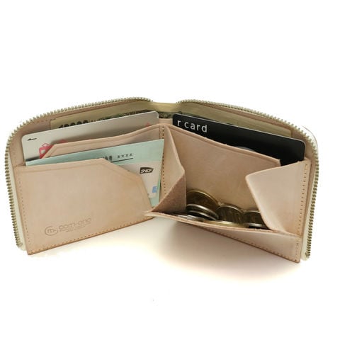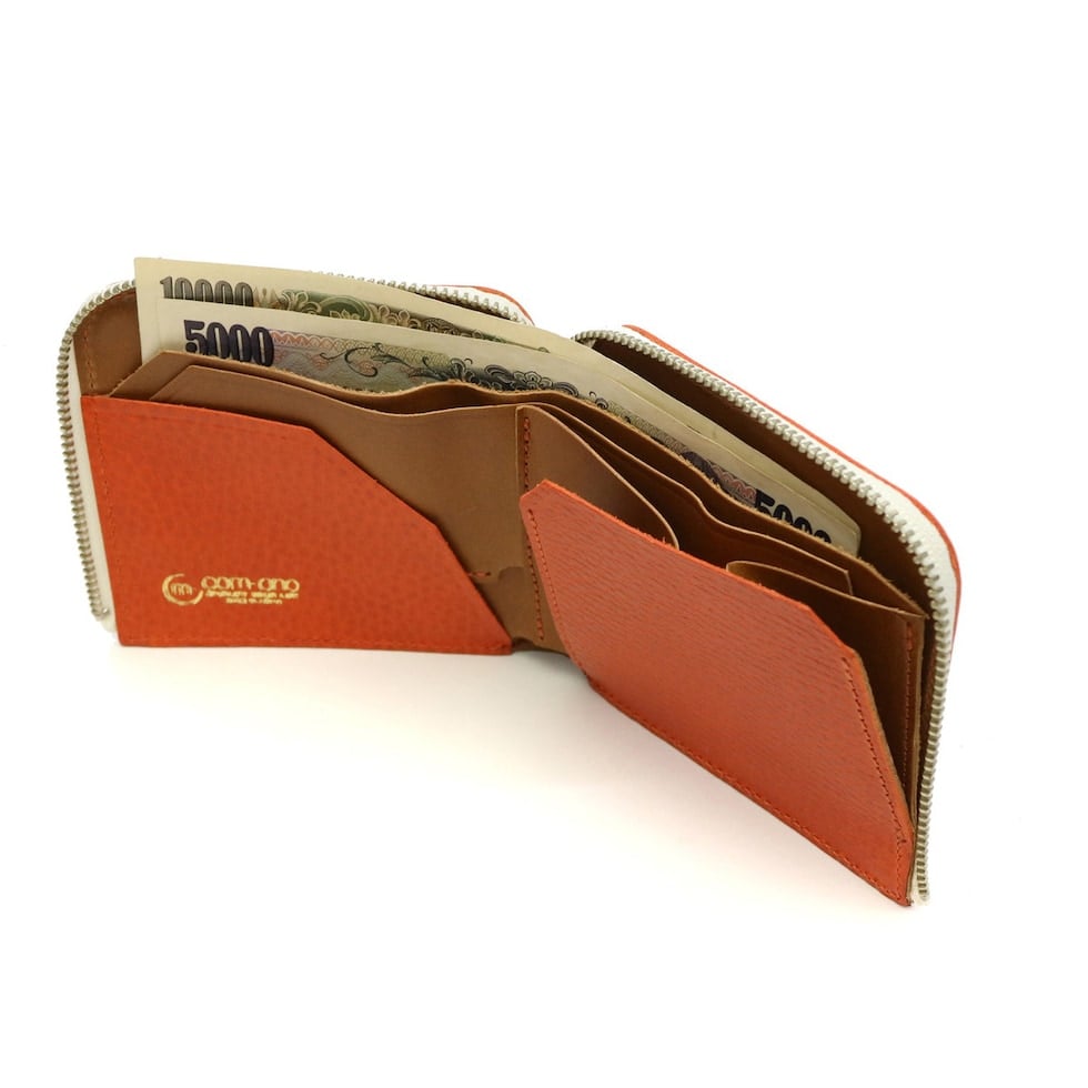 胸ポケットに入りやすいサイズ感が魅力のL字ファスナー仕様の二つ折り財布。薄さはもちろん、使いやすさ、収納力を最大限に追求した、今までにない新たなレザーアイテムです。