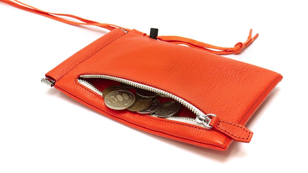 本体は紙幣や小銭を収めネックウォレットとしてや、スマホポーチとしてなどマルチにお使いいただけます。メインルームにはカードポケットを内蔵しています。開閉口はフロントファスナーとバネ口タイプの2つが備わり、アイテムの大きさに合わせて収納、取り出しが可能です。