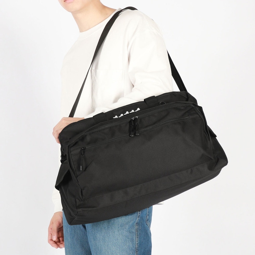 スニーカーのロゴプリントをあしらった2WAYボストンバッグ。レジャーや旅行、合宿、スポーツやジムなど、様々なシーンで活躍する大容量サイズが魅力。荷物の整理がしやすい充実したポケットを装備しており、使い勝手がよいアイテムです。