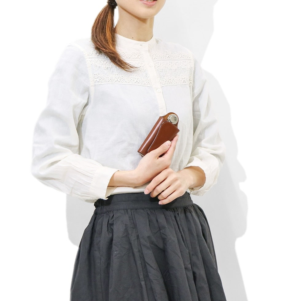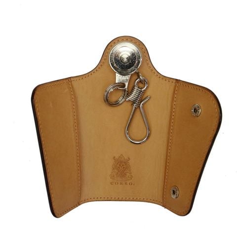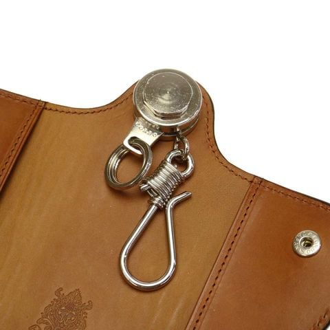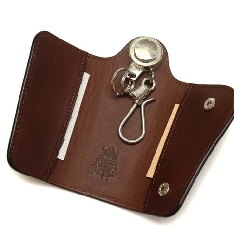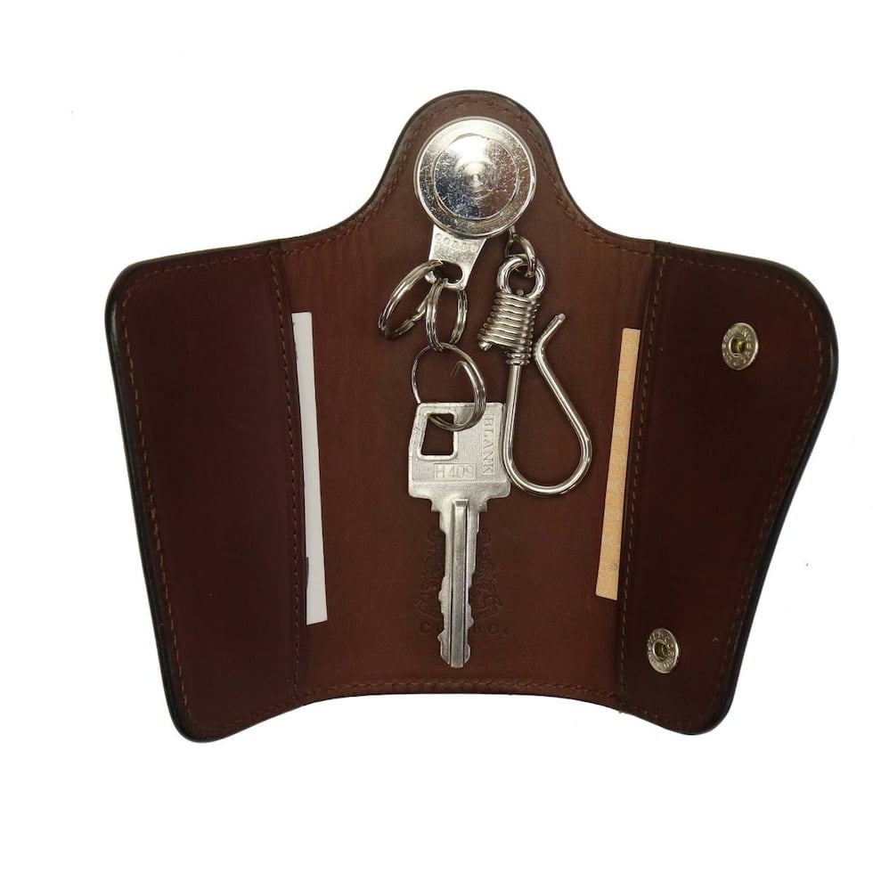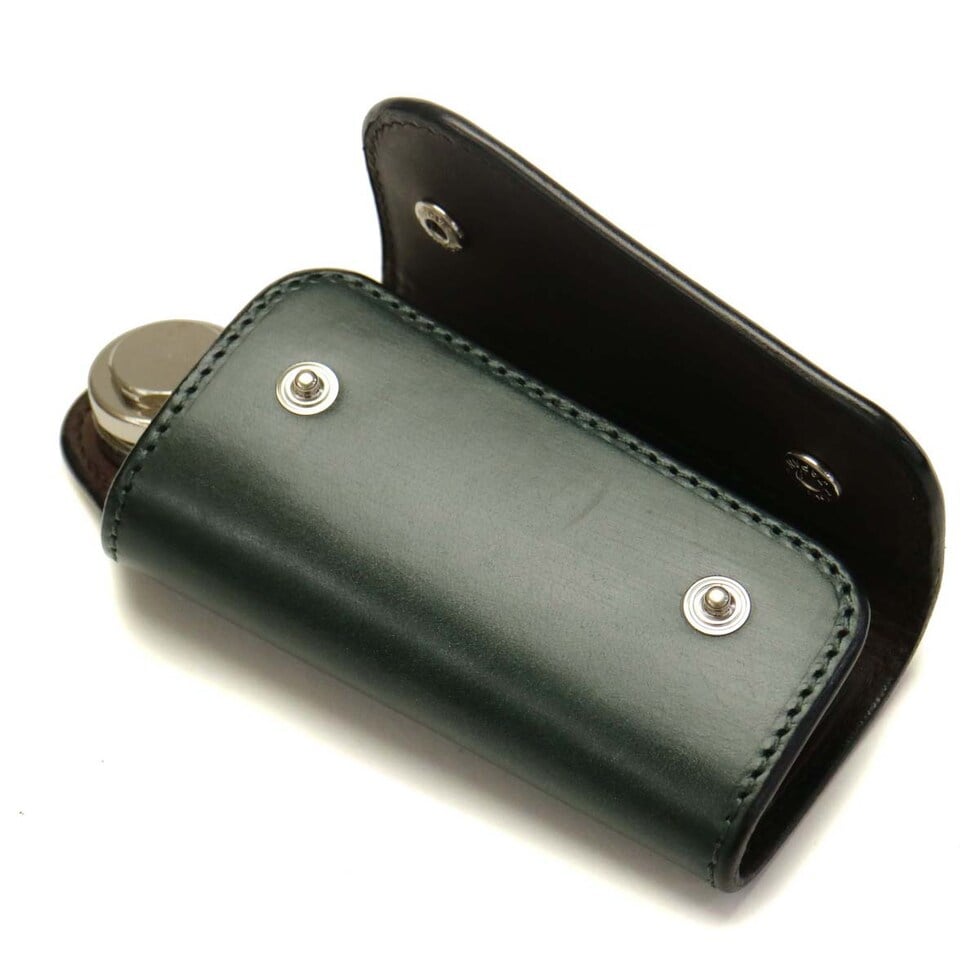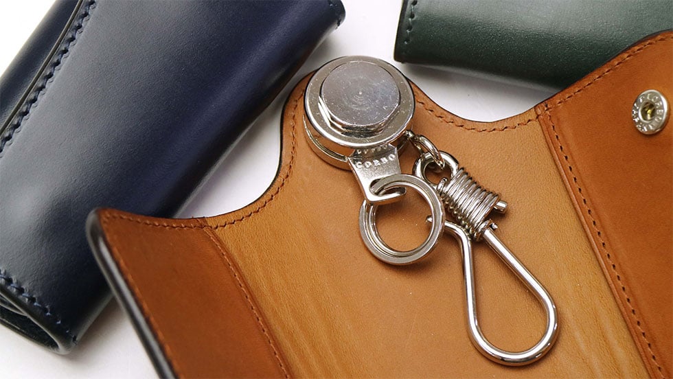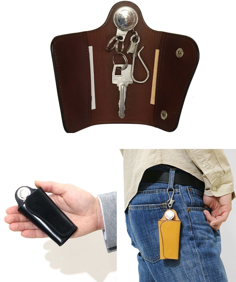 個性的なデザインで存在感を放つキーケースは、シルバーの金具パーツとブライドルレザーのコンビネーションが大人の雰囲気を醸し出す本格派のアイテムです。