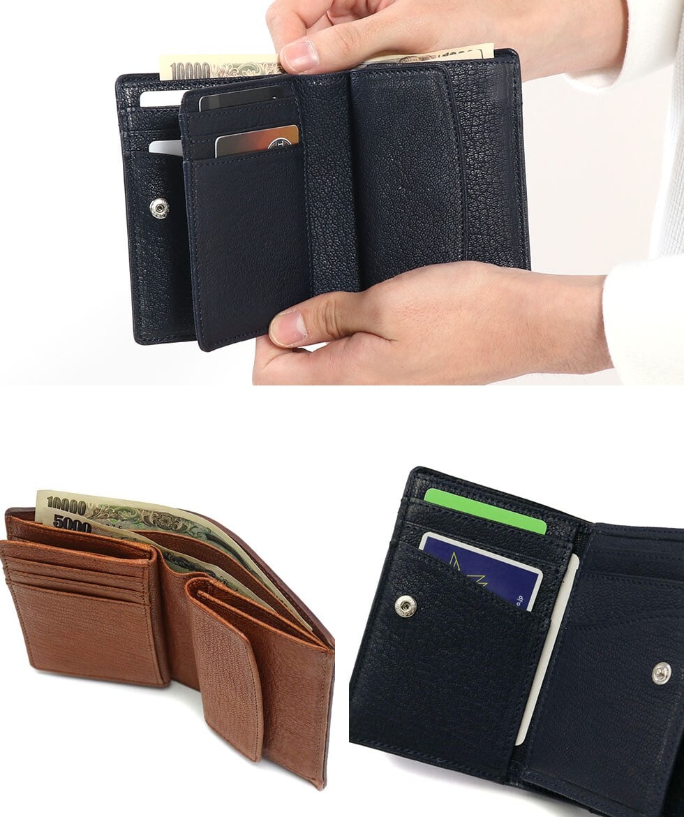 素材に山羊革を贅沢に使用した『GOAT』シリーズの縦型二つ折り財布。装飾のないシンプルさがゆえに素材の持つ魅力をダイレクトに感じていただけるアイテムです。バッグの荷物をコンパクトに収めたい方にもおすすめです。