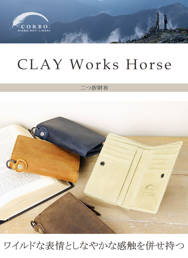 CORBO コルボ 財布 二つ折り財布 メンズ 革 CLAY works HORSE 8JF-9979