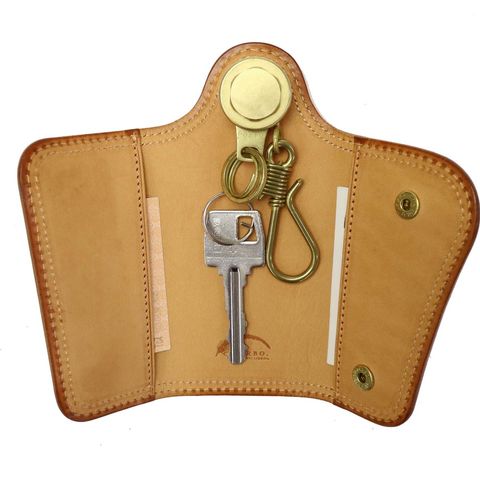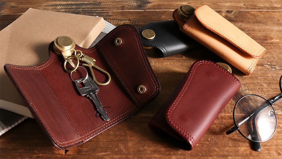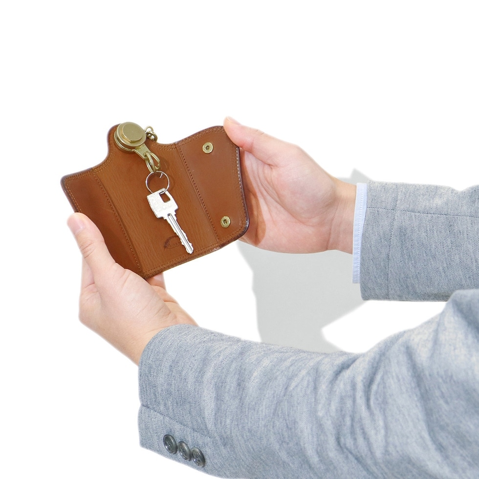 レザー本来の風合いを味わうことのできるキーケースは、滑らかな曲線美が印象的な仕上がり。見た目の美しさと手の馴染み具合による使いやすさを両立したデザインとなっております。また、オイルレザーのナチュラルな素材感と真鍮金具のコンビネーションもポイントになっており、心地よい重量感を生み出します。