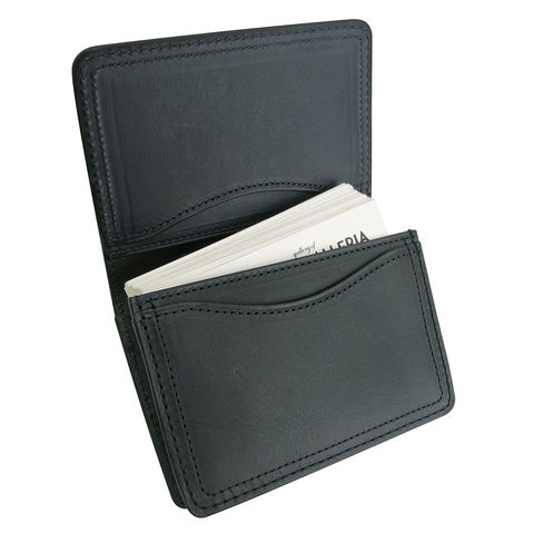 イタリアンオイルレザーの風合いが魅力のシンプルなスクエア型名刺入れ。一般的な名刺が約50~60枚程度入る収納力の高いマチ付きのカードポケットと、小分け収納用のカードポケットを装備。レザーの深い味わいを楽しみながら、確かな使い心地を味わえるベーシックなアイテムに仕上がっています。