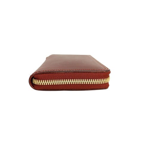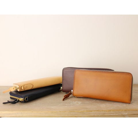 スーツにも合わせられるラウンドジップ型のお財布。Dカン付きで、ウォレットコードとの組み合わせも可能なのでシーンに応じた使い方が楽しめます。見た目は一般的なラウンドジップの物と同じですが、内装に工夫がされたつくりになっています。片側のジャバラマチをなくすことで大きく開き、見やすさや取り出しやすさが高められています。中身の少ない時には薄く、多い時の容量はしっかり確保されているつくりが魅力です。