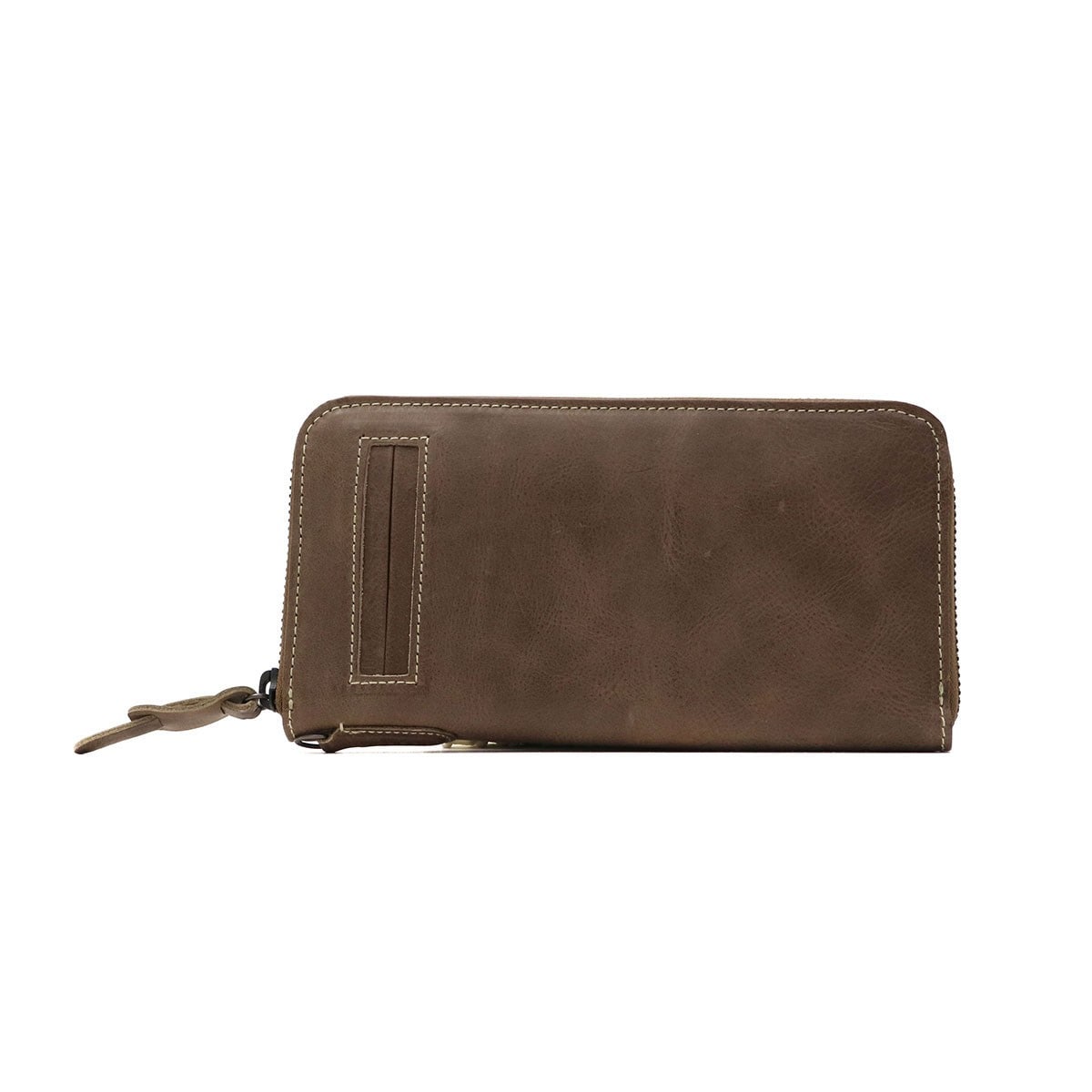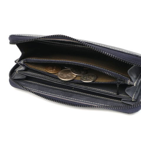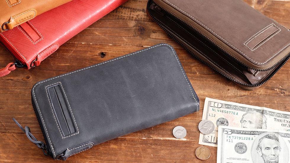 ICカードの収納に便利な外側カードポケットを装備した、ラウンドファスナー長財布。マットで柔らかな肌合いの牛革は、使うほどに油分や摩擦を積み重ね、変化する表情もお楽しみいただけます。