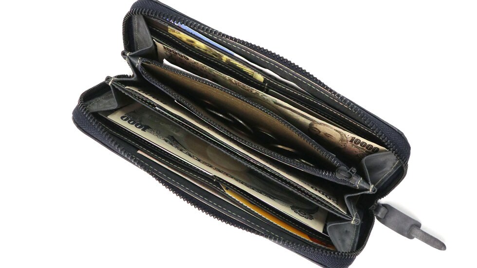 3層の収納部を備え、紙幣や領収書もスムーズに仕分けて収納可能。チケット等の収納などフリーに使えるポケットや、ファスナー式小銭入れを備え、ベーシックさと使いやすさを備えたつくりになっています。