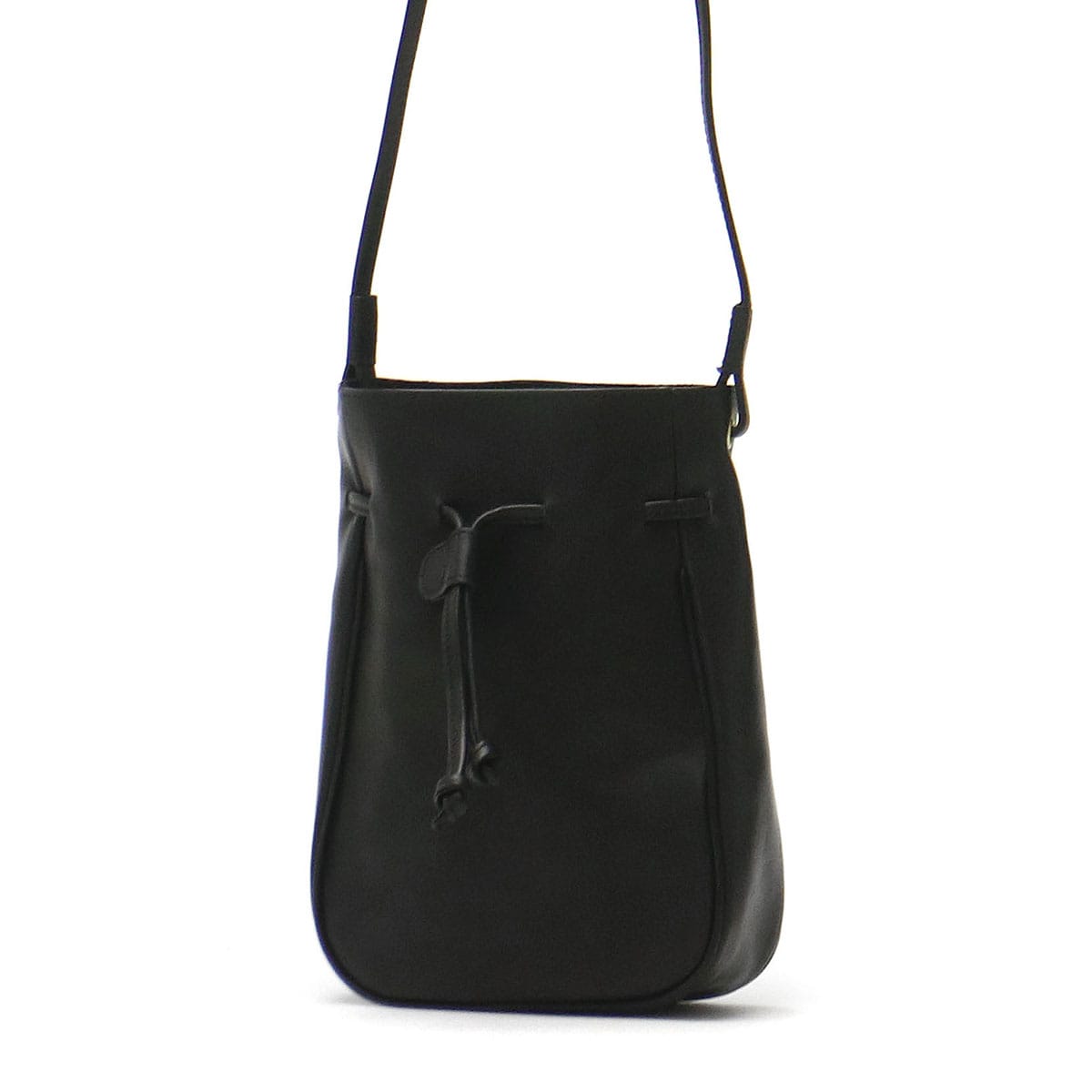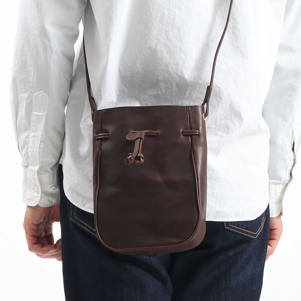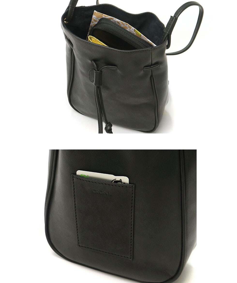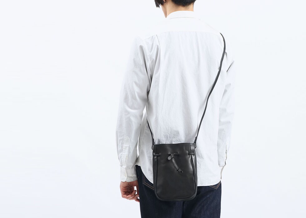 使い勝手の良いサイズ感で人気の根強い、巾着タイプのレザーミニショルダー。ショルダーストラップの長さは十分にあるので、コートやダウンに合わせても斜めがけしやすくなっています。落ち着いたカラーなので、性別や年齢、コーディネートを選ばずマルチに活躍します。