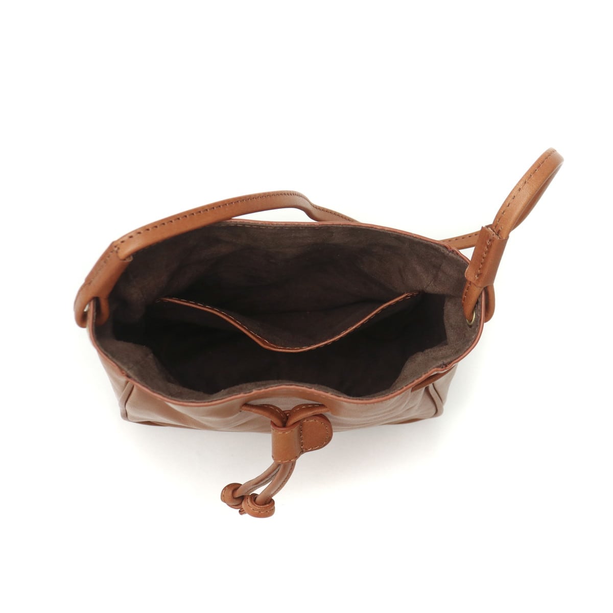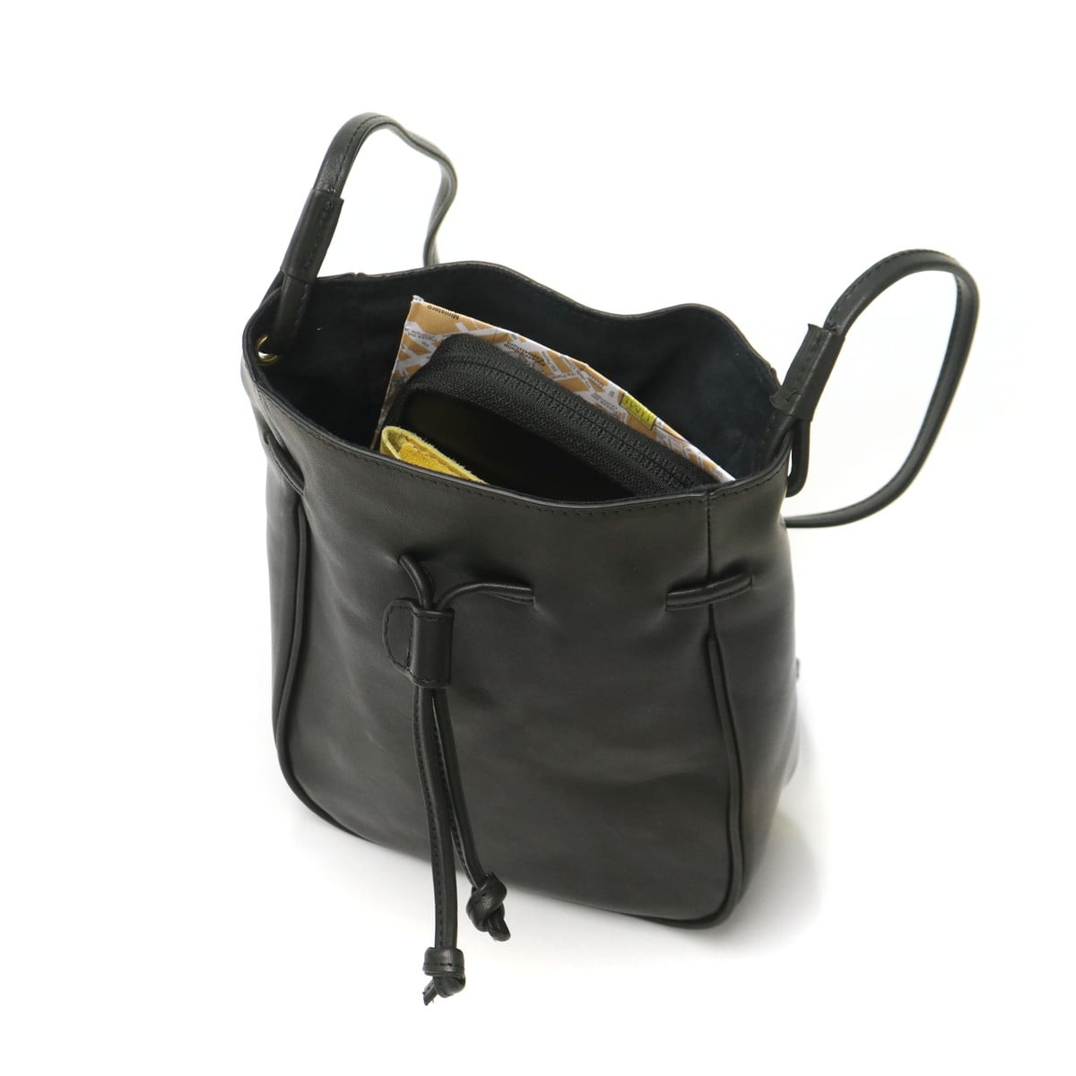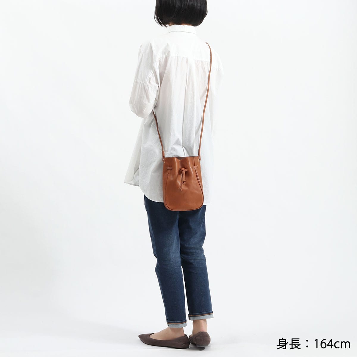 使い勝手の良いサイズ感で人気の根強い、巾着タイプのレザーミニショルダー。ショルダーストラップの長さは十分にあるので、コートやダウンに合わせても斜めがけしやすくなっています。落ち着いたカラーなので、性別や年齢、コーディネートを選ばずマルチに活躍します。