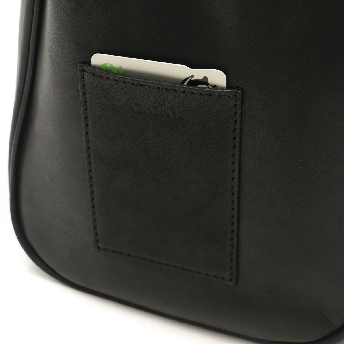 収納部はコンパクトながら、長財布、スマホなど外出の必需品がしっかり収まるサイズ感になっています。内部には小物類の仕分けに便利なポケットを内蔵している為、荷物をすっきり整頓可能。さらに、本体背面部分にはSuicaやPASMOがぴったり収まるポケットつきなので、移動時に大変便利です。