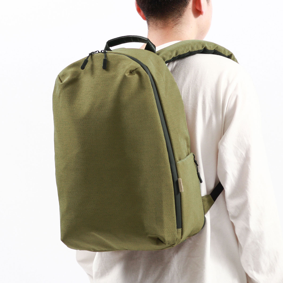 詳細説明 外側にはファスナー付きのポケットを搭載しており、折り畳み傘からペットボトルなど少し大きいサイズでも収納することができます。バッグ上部には小物類がサッと取り出せる小さめなポケットがついています。また、ポリエステルでありながら麻のような質感の生地は、使用済みのペットボトルから再生されたポリエステル繊維「エコペット」を使用。さらに特注で撥水加工を施すことでハリが生まれ、水にも強いサスティナブルリュックとなっています。