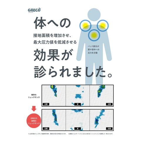 サトウキビ由来の原材料で作られるクッション材『GRECO』とのコラボシリーズのリュック。マットレスにも使われる網状の繊維素材を搭載したショルダーストラップが肩に掛かる負荷を軽減し、裏側に滑り止め素材を採用することでずれ落ちてくる心配もありません。通勤や通学時に、荷物を入れ過ぎて肩が痛くなったり肩が凝ったりするリュックユーザーの方におすすめのアイテムです。