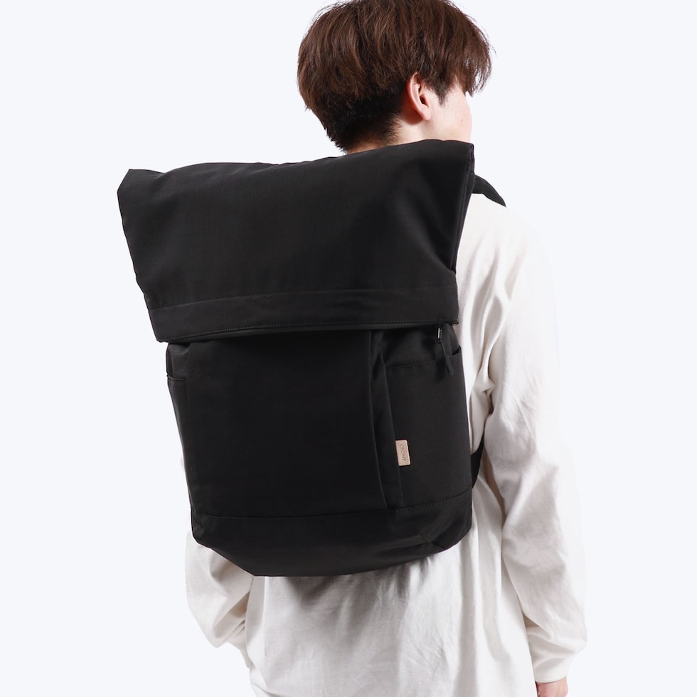 サトウキビ由来の原材料で作られるクッション材『GRECO』とのコラボシリーズのリュック。マットレスにも使われる網状の繊維素材を搭載したショルダーストラップが肩に掛かる負荷を軽減し、裏側に滑り止め素材を採用することでずれ落ちてくる心配もありません。通勤や通学時にPCや書類など、荷物を入れ過ぎて肩が痛くなったり肩が凝ったりするリュックユーザーの方におすすめ。また、シンプルなデザインながら、ロール部分の巻き方によって色々な表情を楽しむことのできる魅力的な仕上りとなっています。